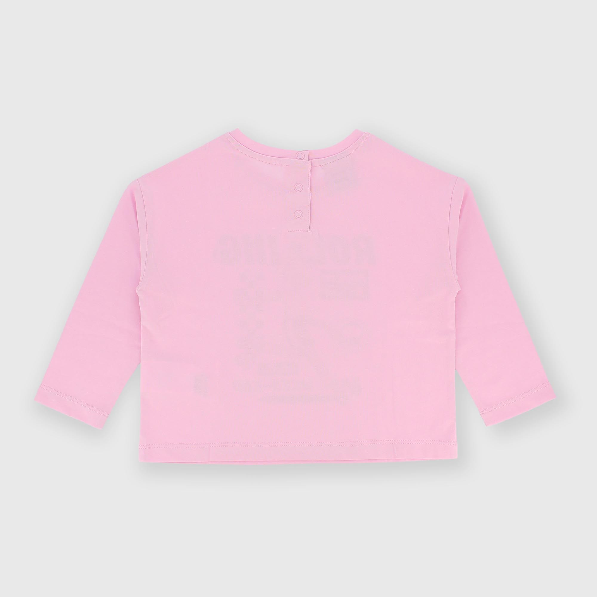 Camiseta de jersey, cuello redondo y manga larga. Cierre posterior con corchetes automáticos. Estampado en la parte delantera.