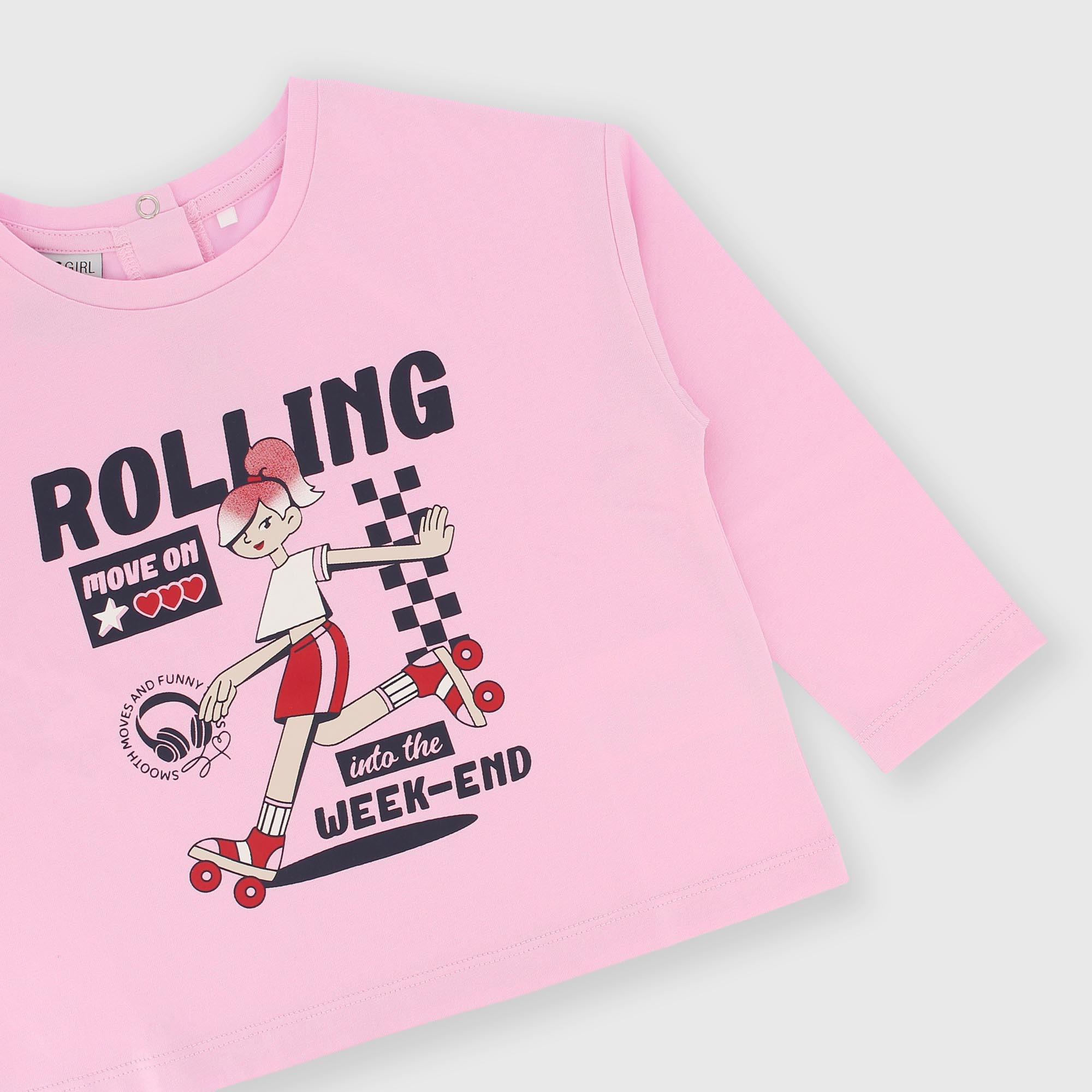 Camiseta con mangas largas de jersey para niña rosa