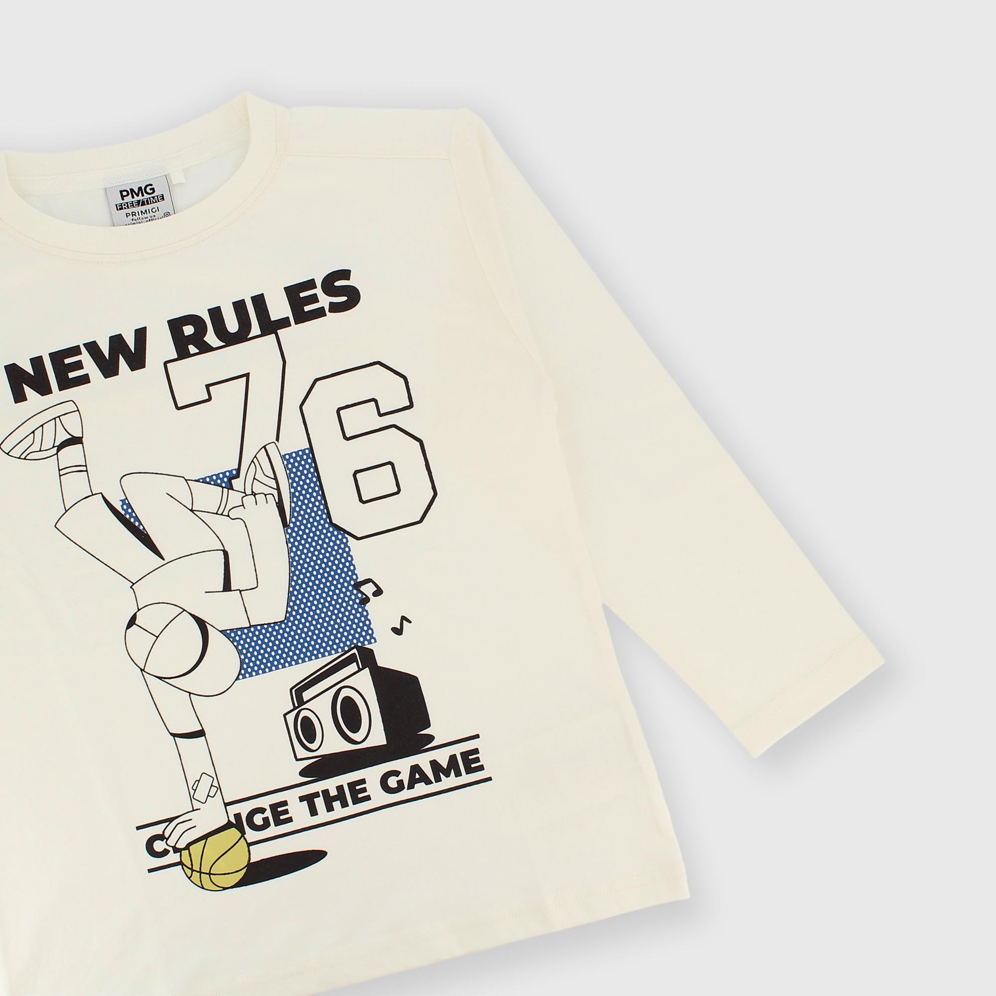 Camiseta de tejido Jersey, con cuello redondo, mangas largas. Parte delantera estampada.
