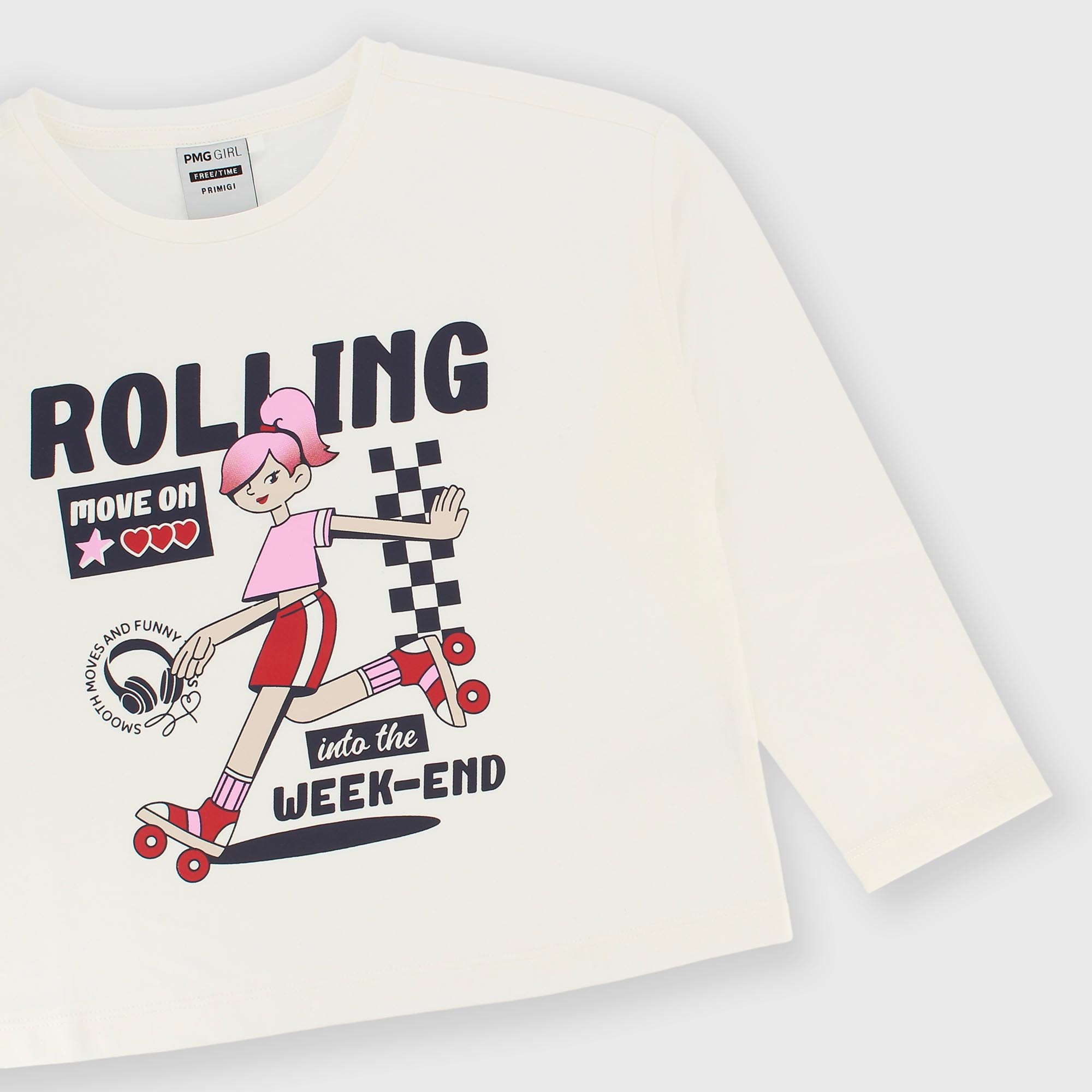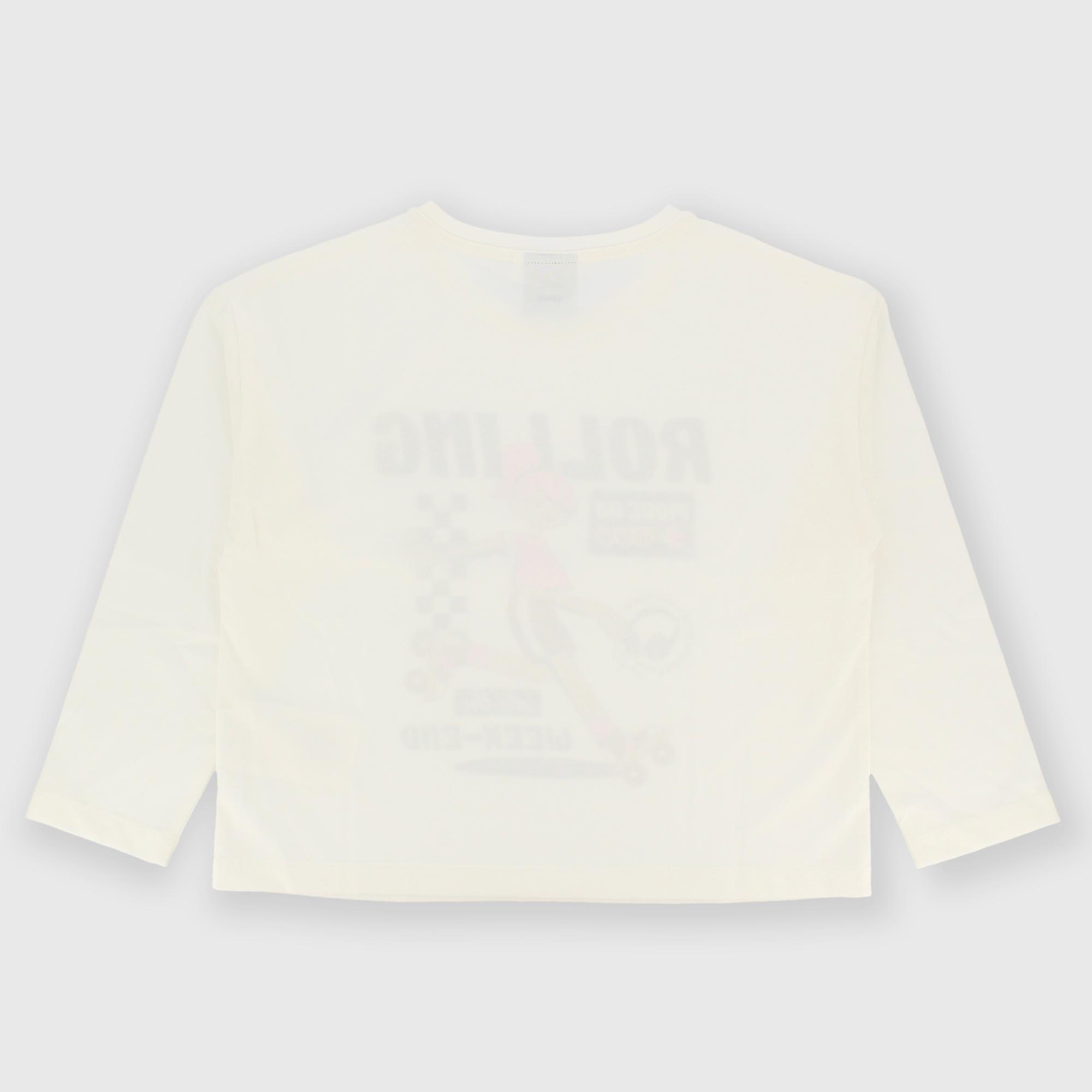 Camiseta de jersey, cuello redondo y manga larga. Estampado en la parte delantera.