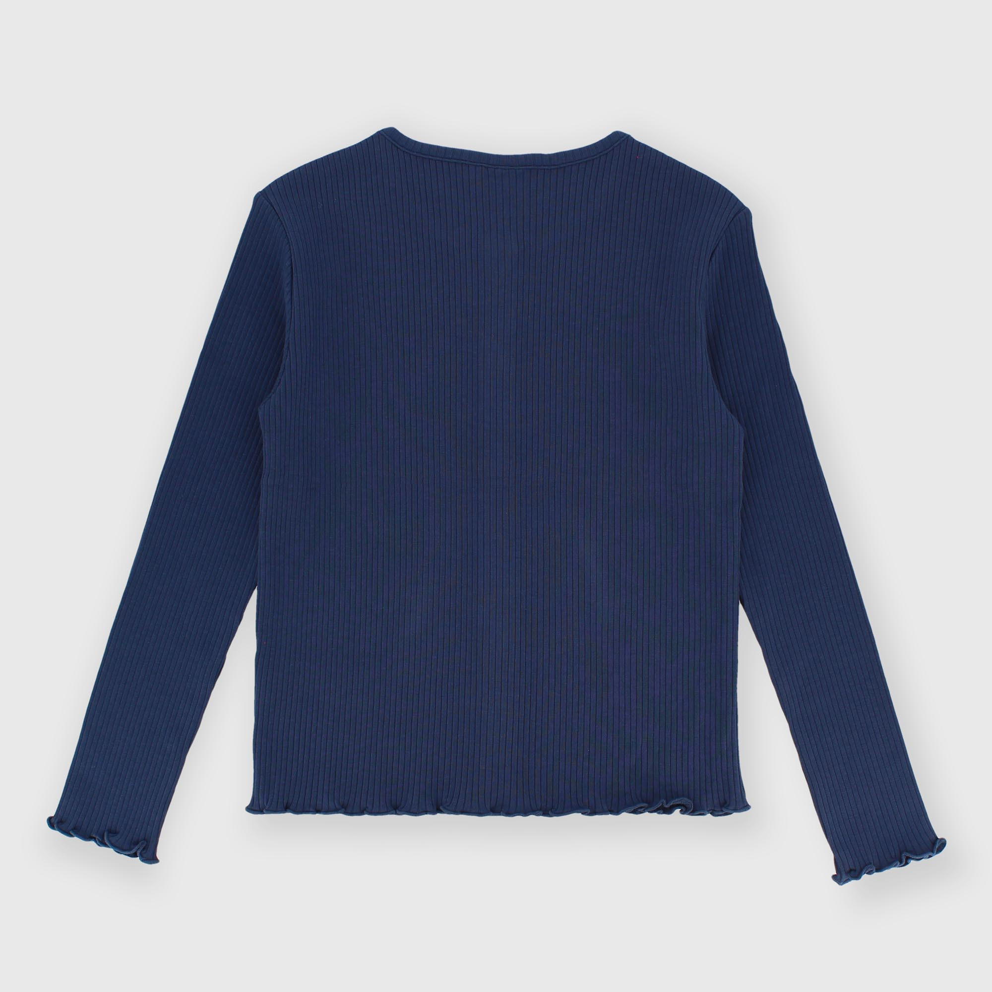 Rebeca canalé, cuello redondo. Cierre con botones en la parte delantera. Acabado con punto bambola.