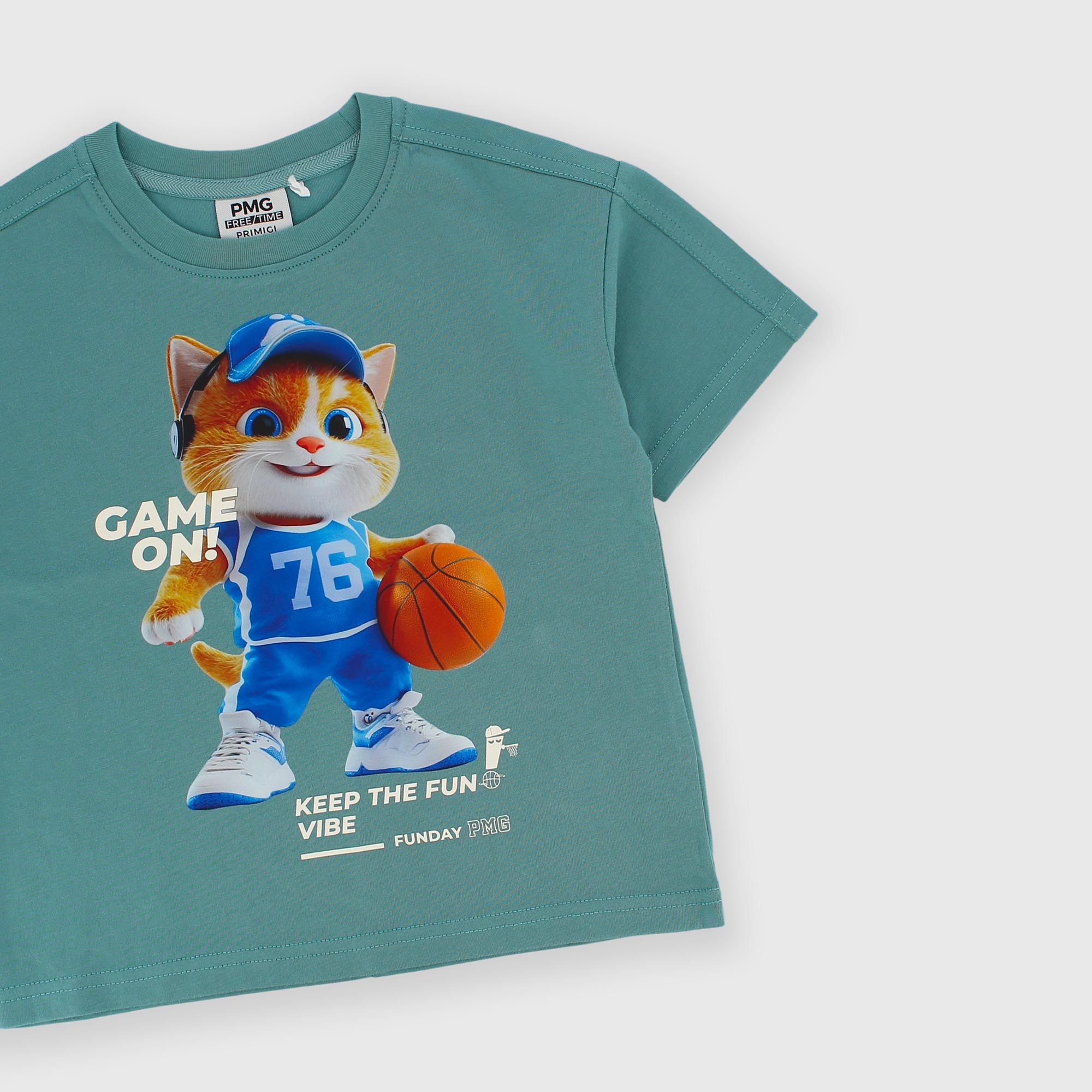 Camiseta de jersey, cuello redondo y manga corta. Estampado en la parte delantera.