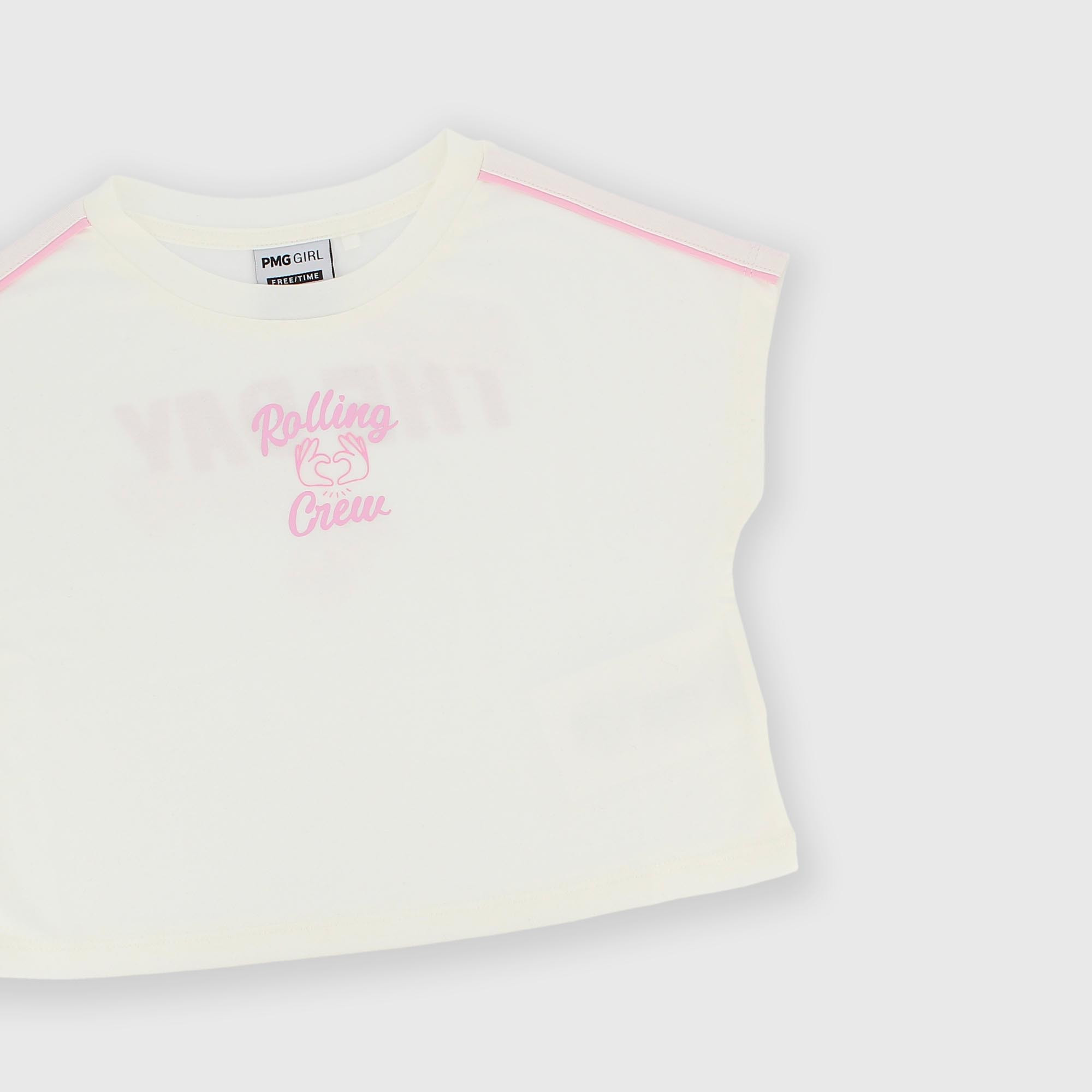 Camiseta de viscosa, cuello redondo y manga corta. Estampado en la parte delantera y trasera.