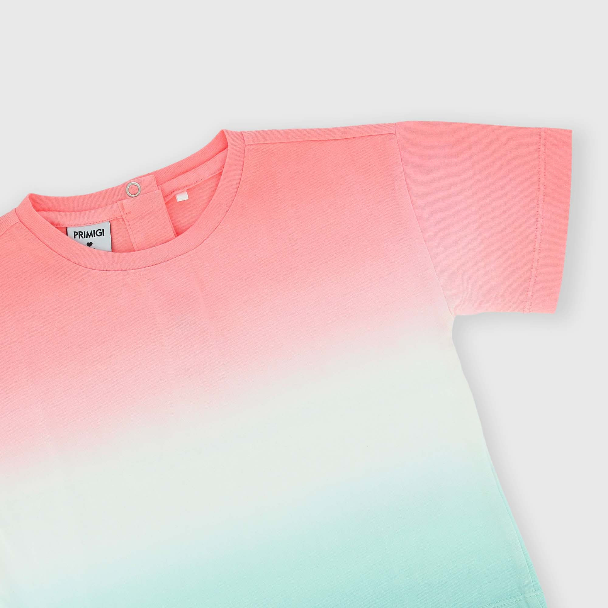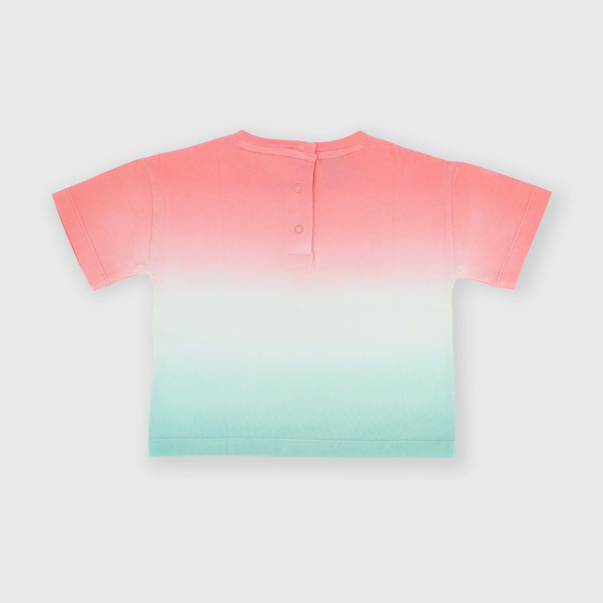 Camiseta de tejido Jersey degradado, cuello redondo, mangas cortas. Cierre con botones automáticos en la parte trasera.