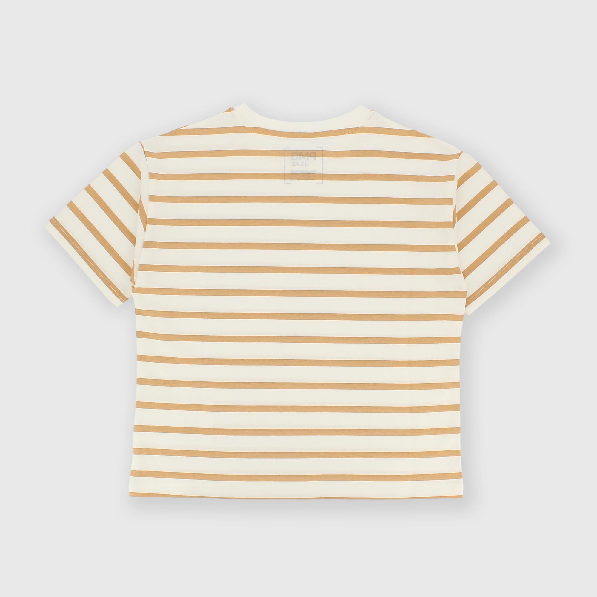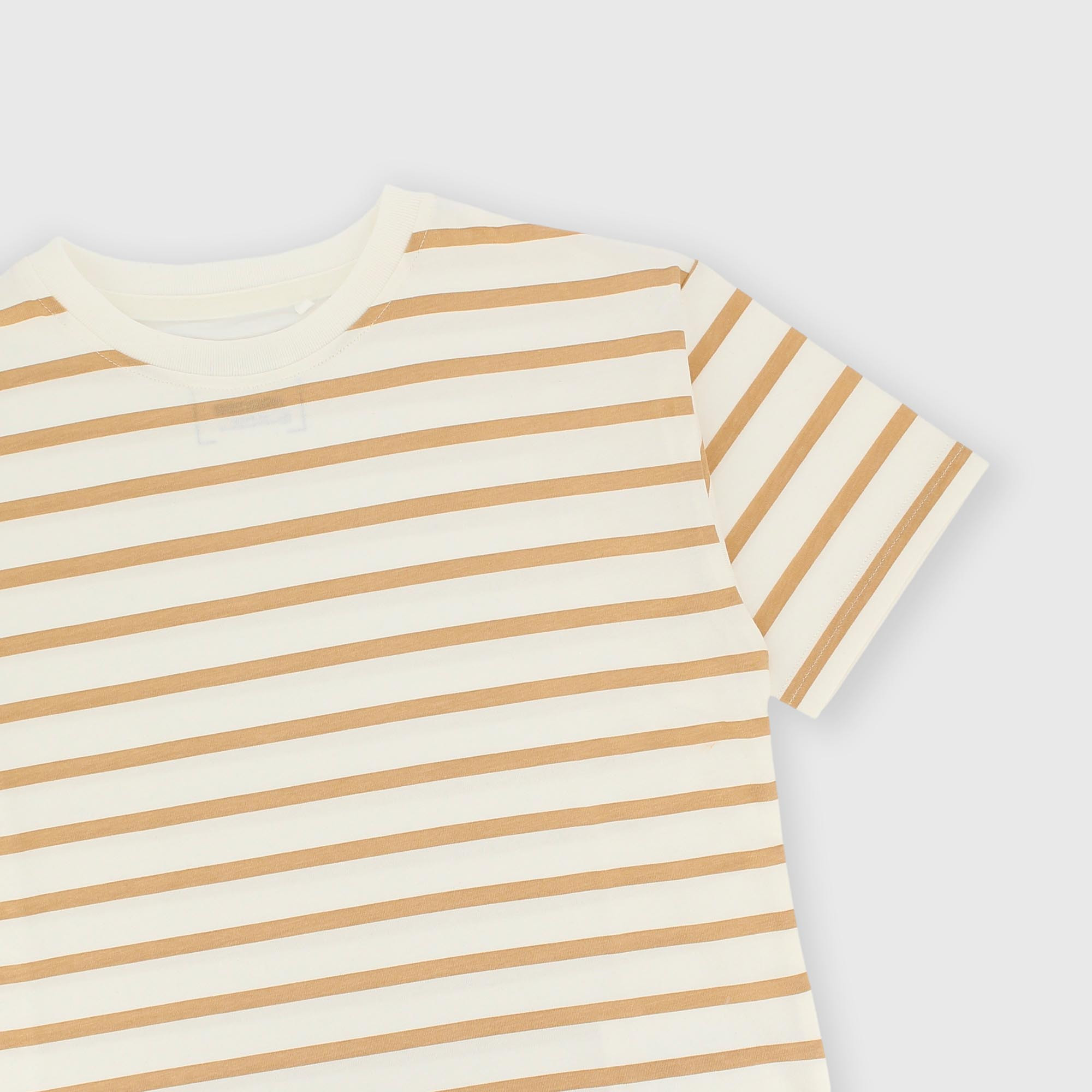 Camiseta de jersey a rayas, cuello redondo y manga corta.