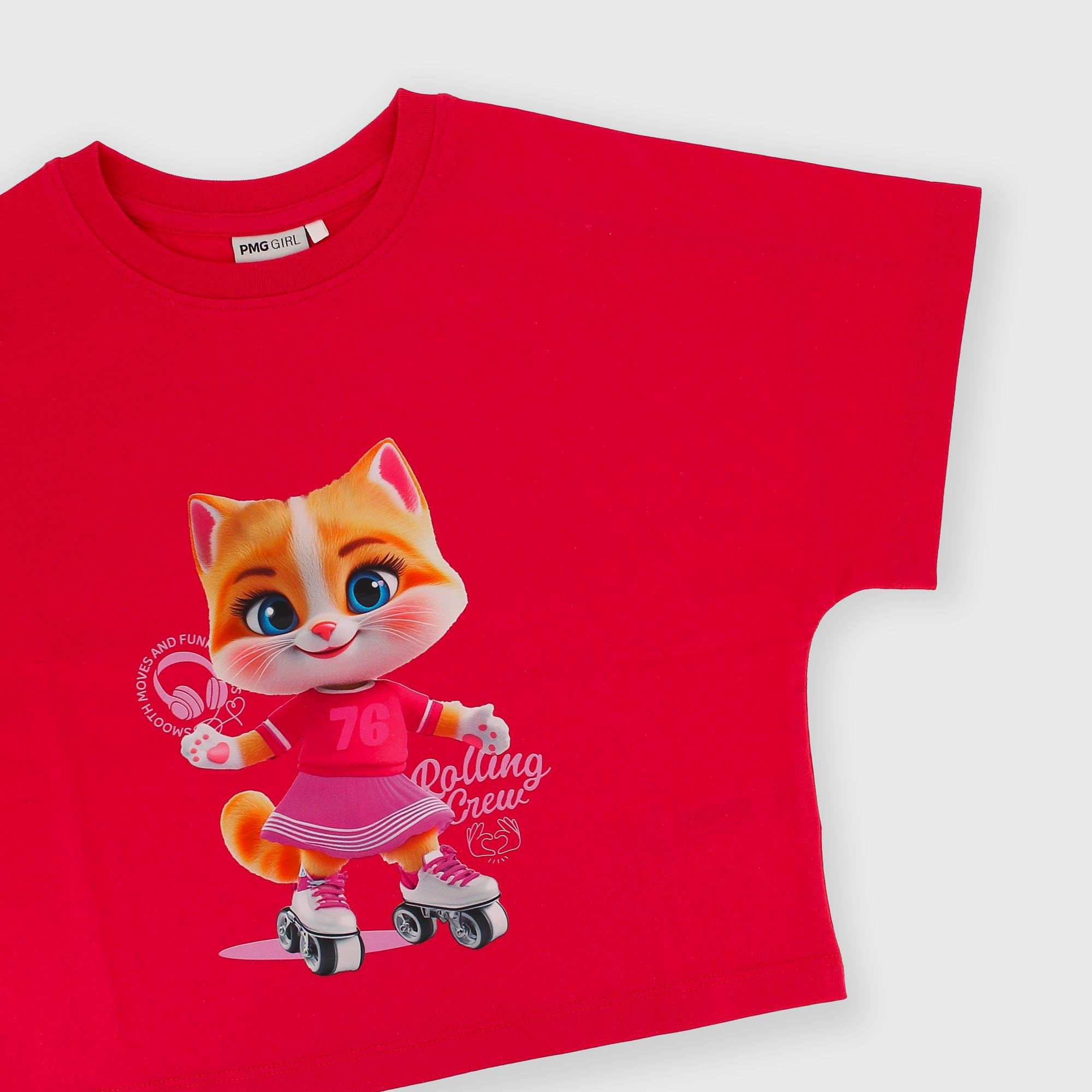 Camiseta de jersey, cuello redondo y manga corta. Estampado en la parte delantera.