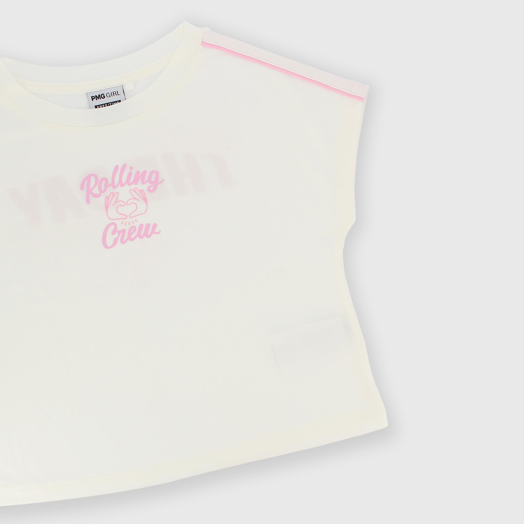 Camiseta de viscosa, cuello redondo y manga corta. Estampado en la parte delantera y trasera.
