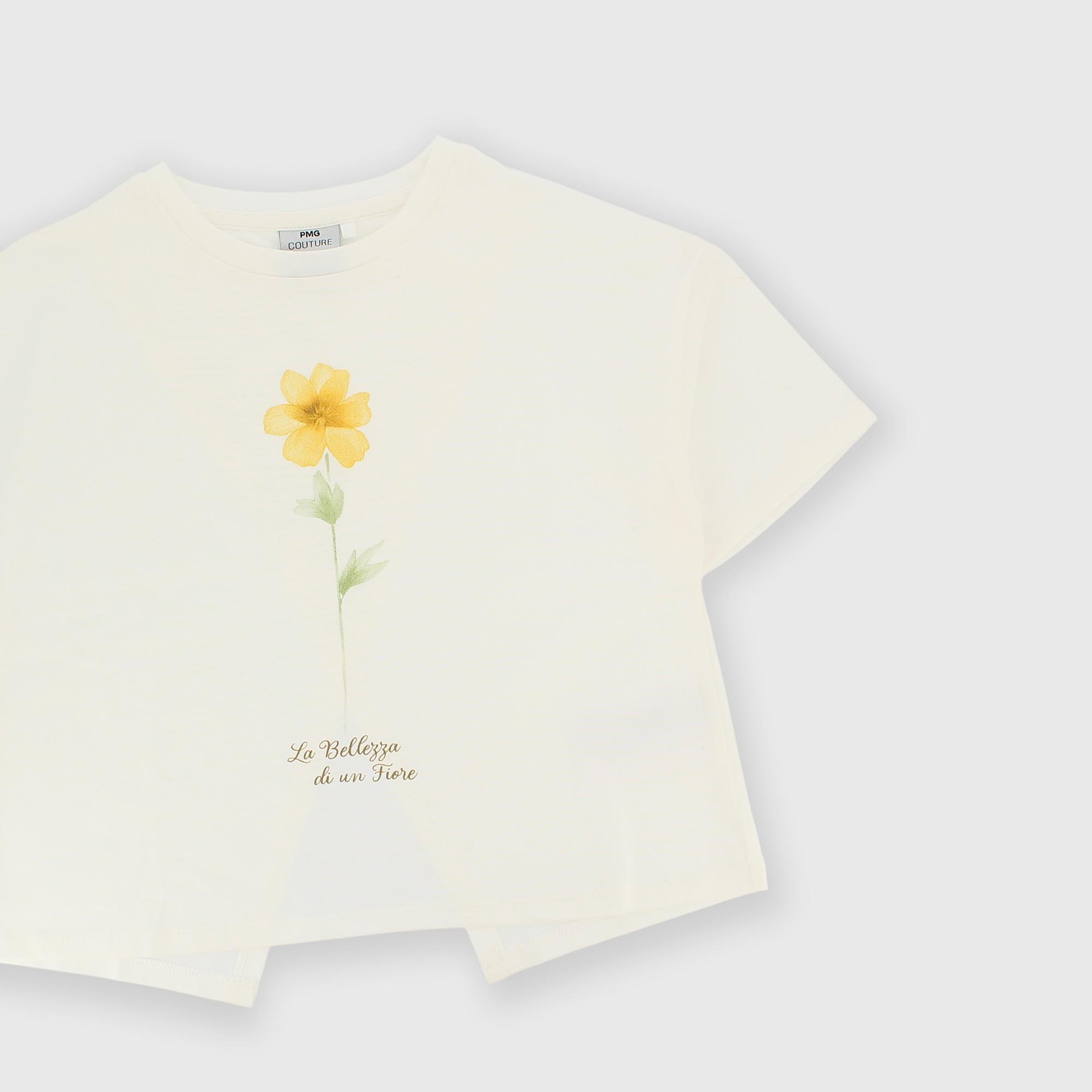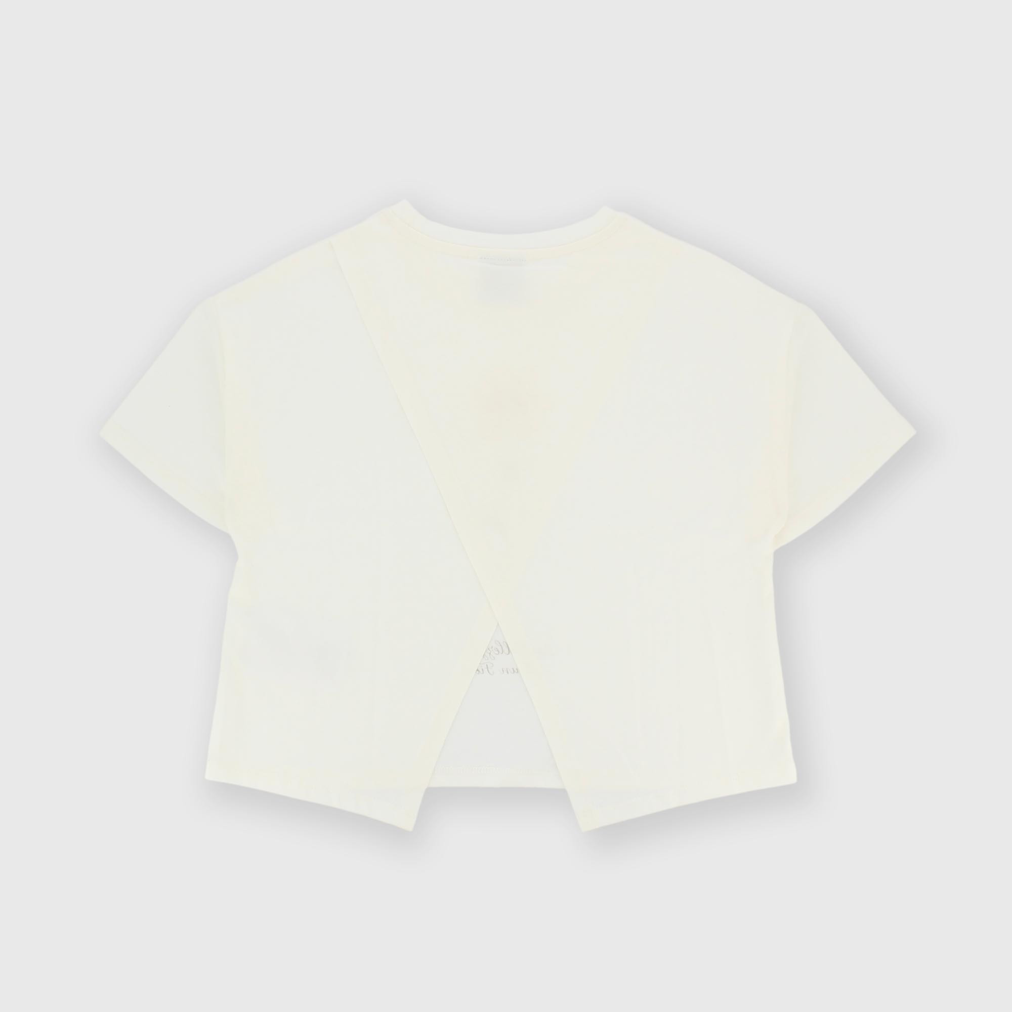Camiseta de jersey, cuello redondo y manga corta. Estampado en la parte delantera. Espalda cruzada.