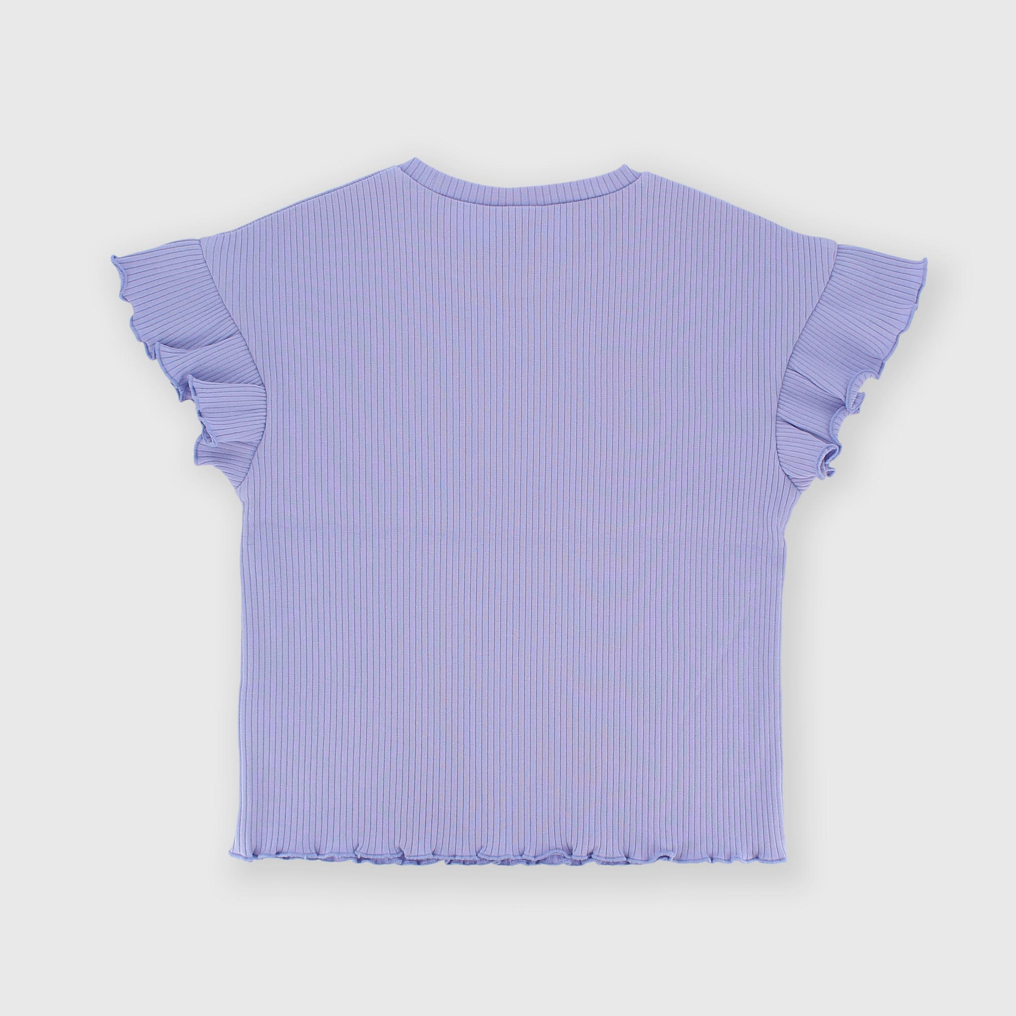 Camiseta de canalé, cuello redondo y manga corta. Acabados con punto de festón.