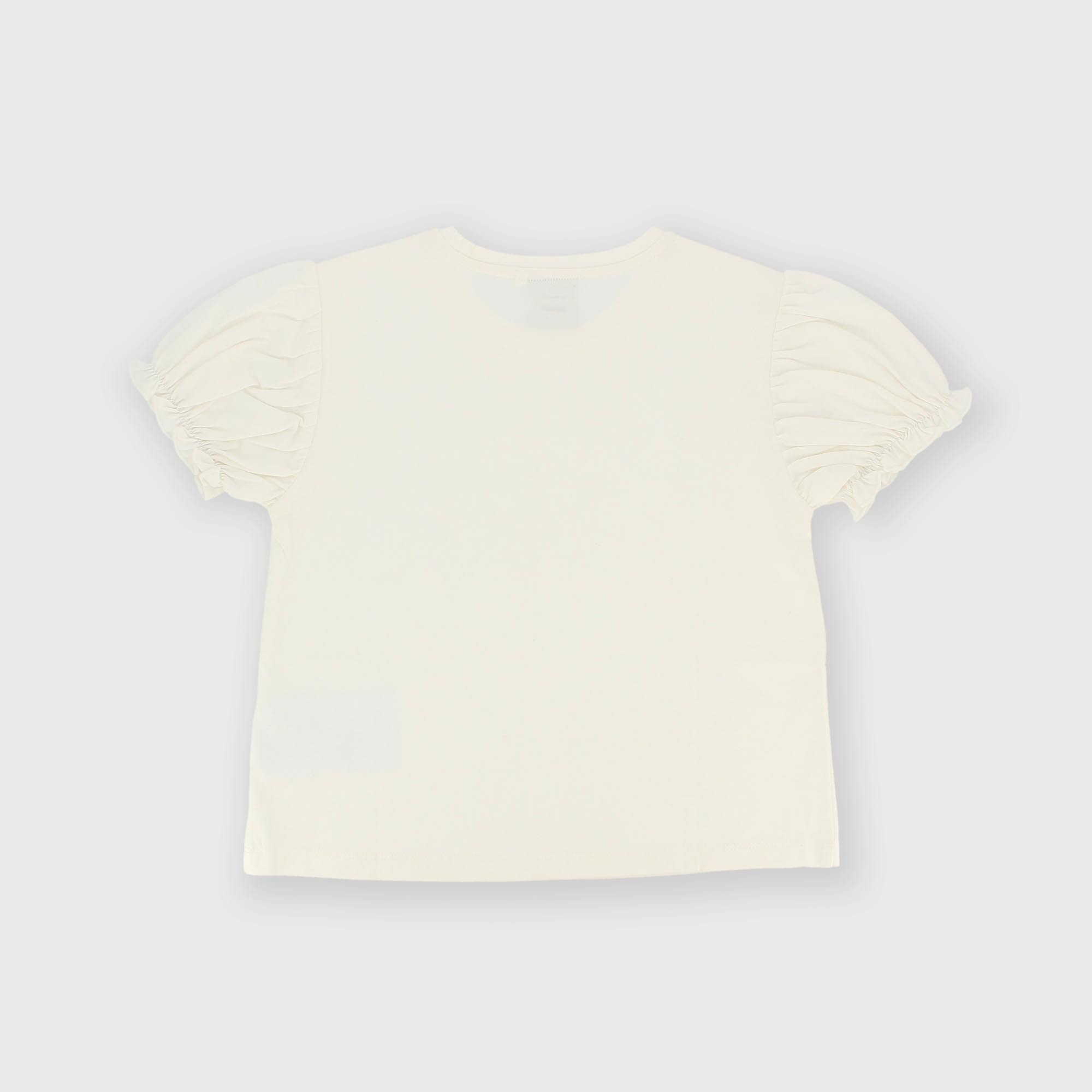 Camiseta de jersey, cuello redondo. Mangas cortas tipo globo de voile.