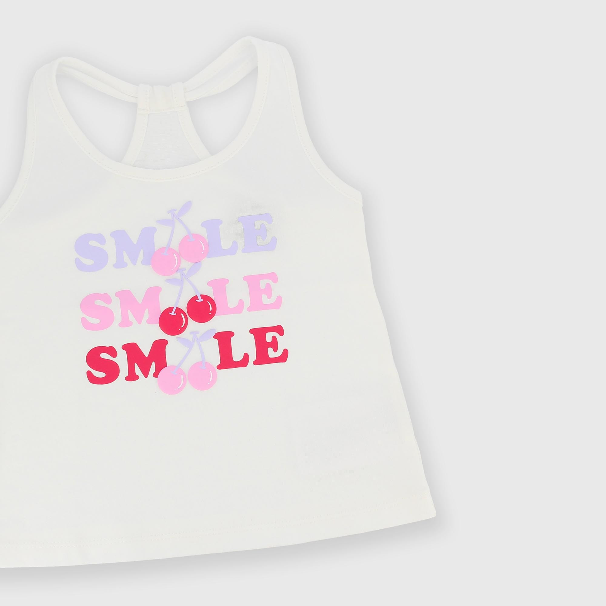 Camiseta de tirantes, cuello redondo. Estampado frontal con detalles puffy.