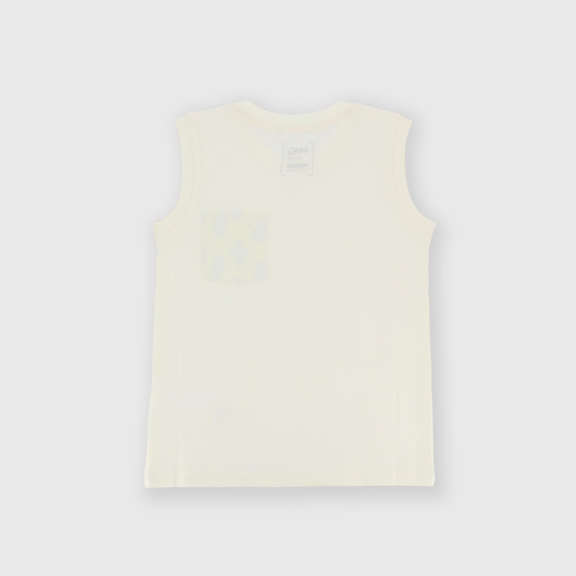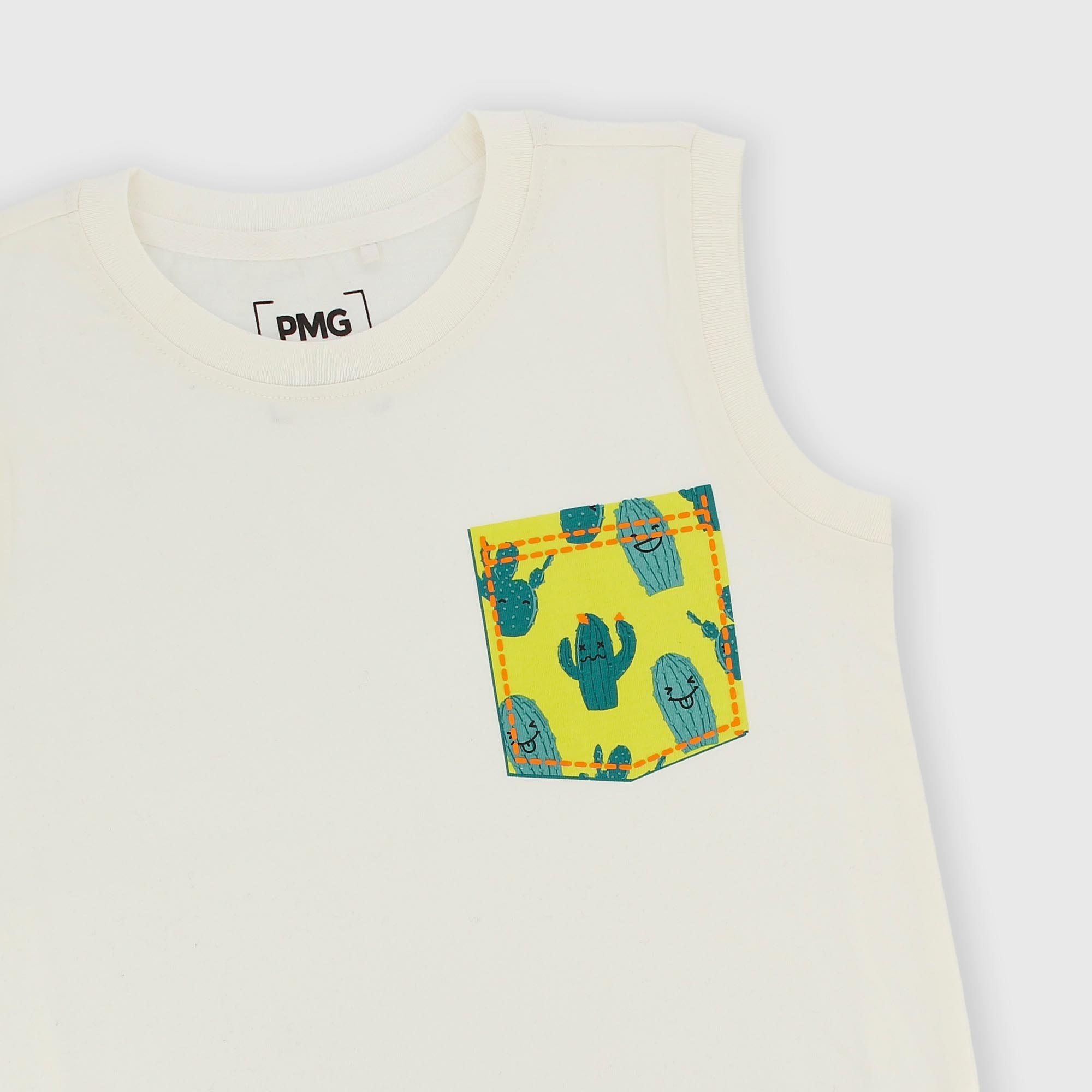 Camiseta de tirantes de tejido Jersey, cuello redondo. Falso bolsillo estampado.
