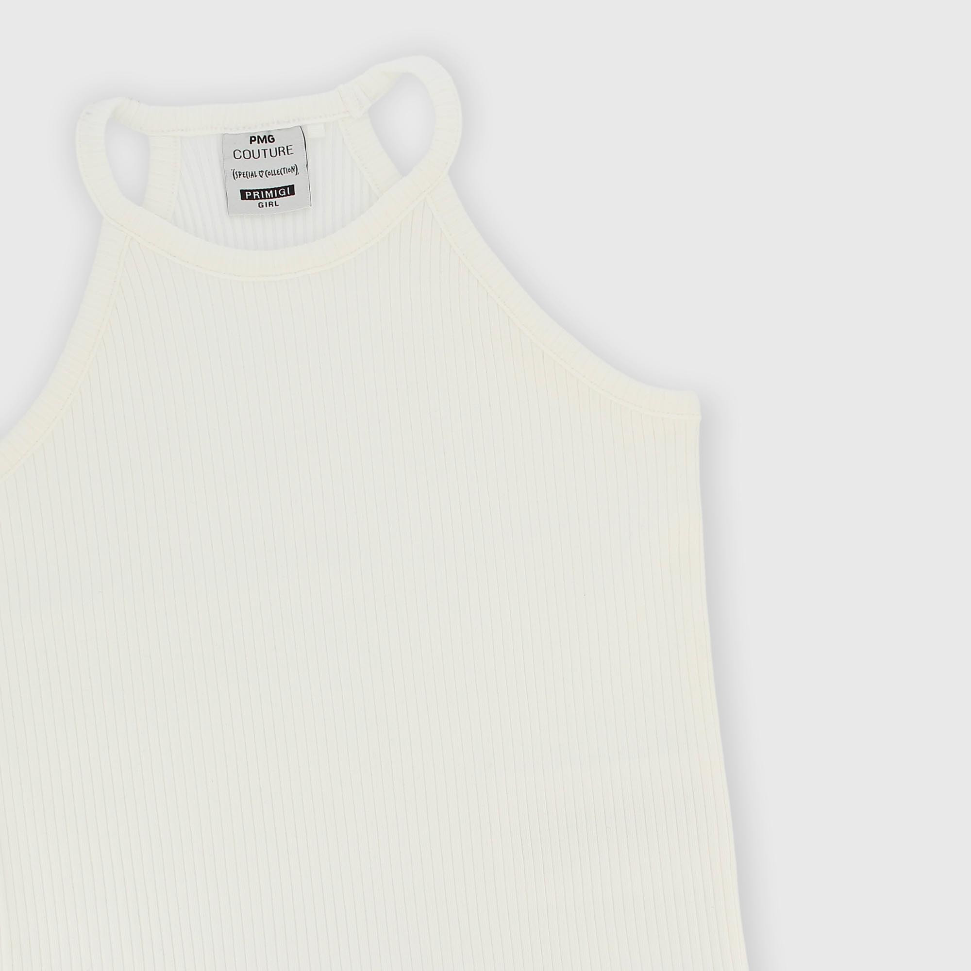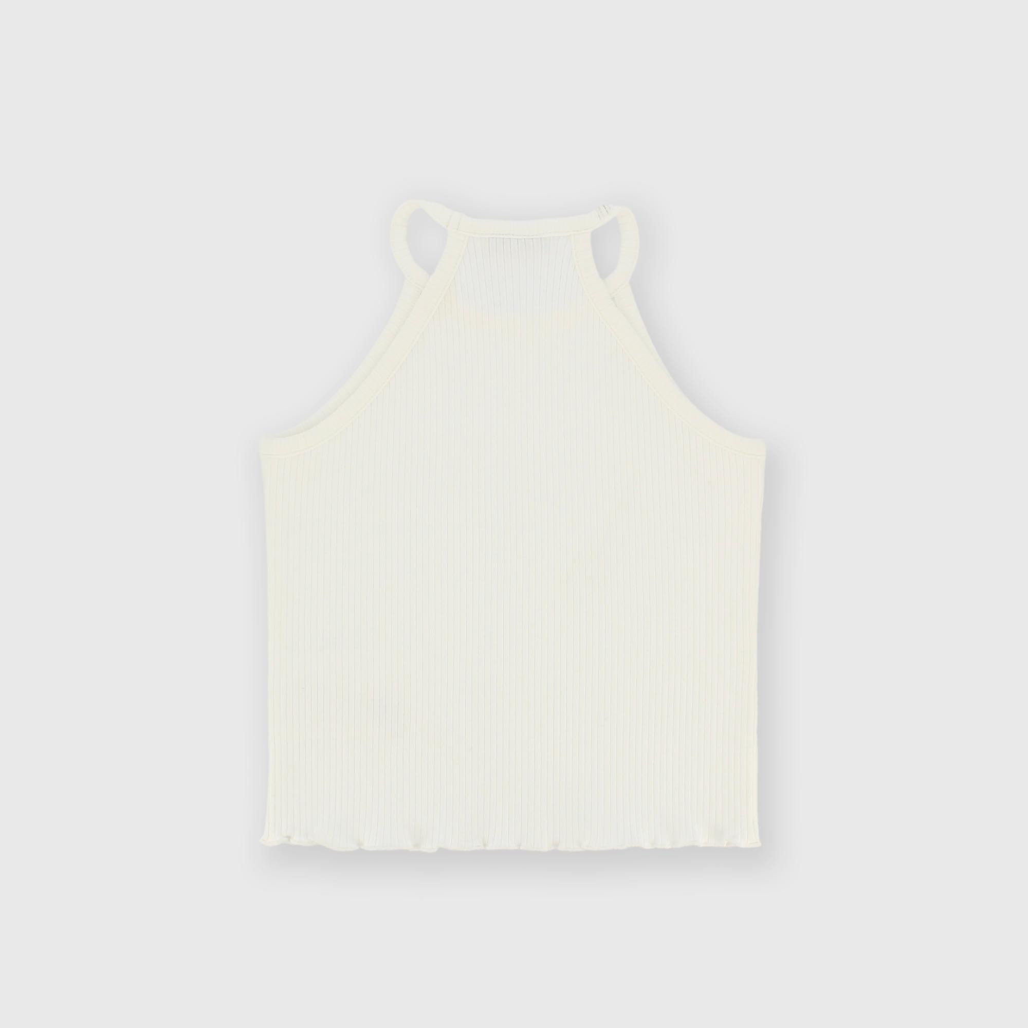 Camiseta de tirantes canalé con cuello americano y tirantes finos. Acabados con punto denso.