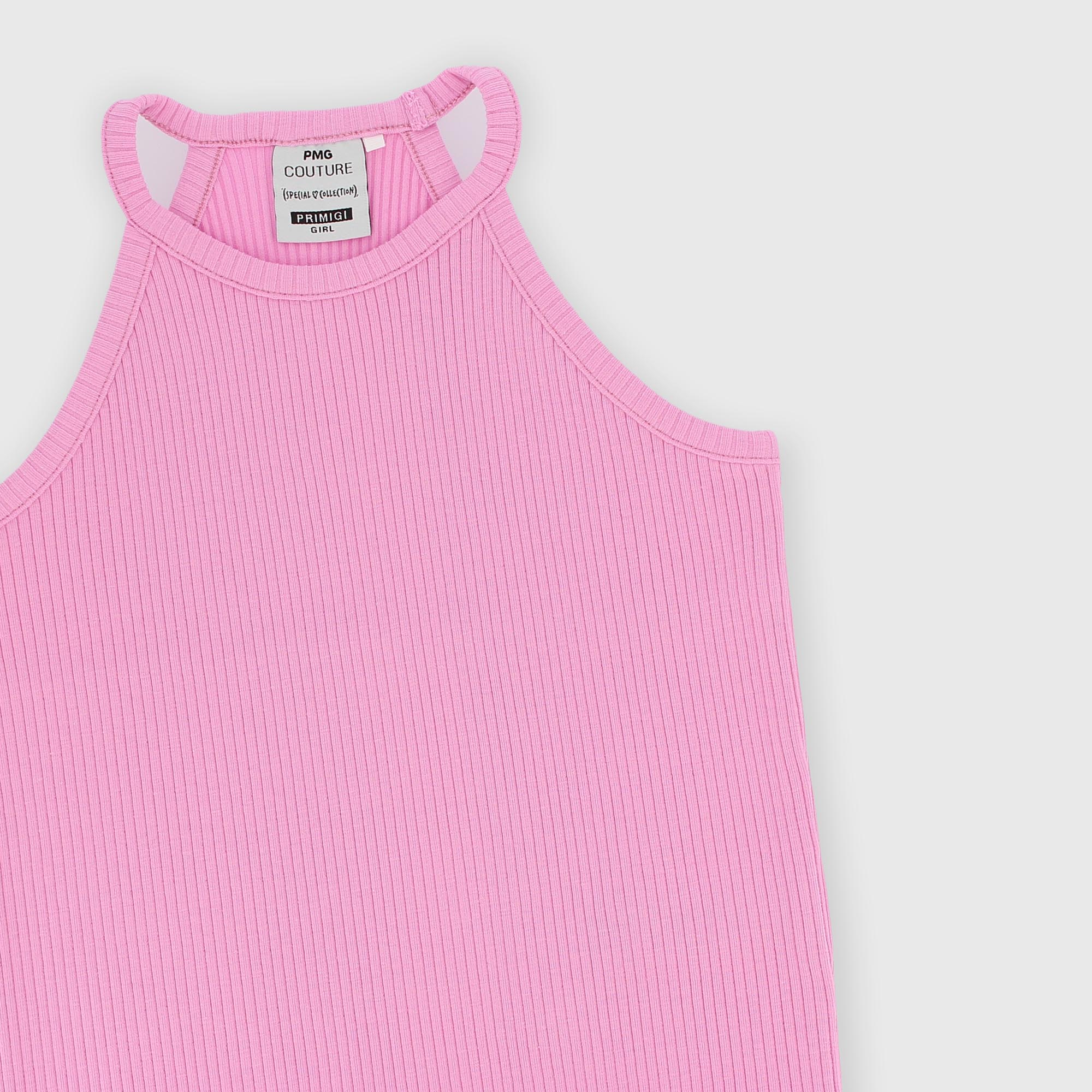 Camiseta de tirantes canalé con cuello americano y tirantes finos. Acabados con punto denso.