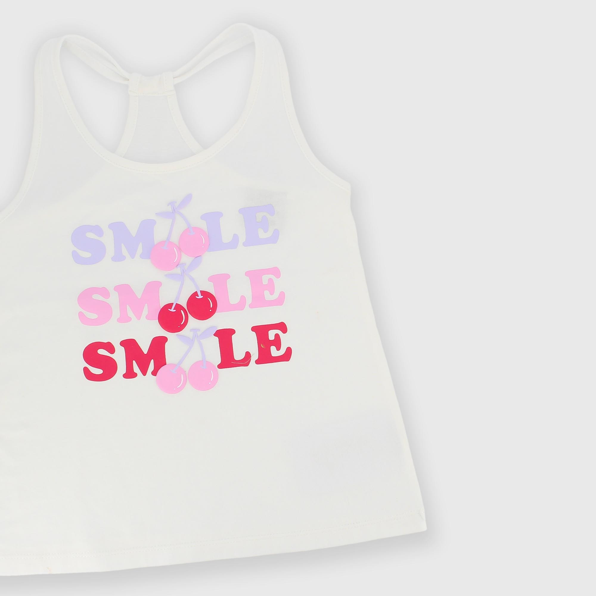 Camiseta de tirantes, cuello redondo. Estampado frontal con detalles puffy.
