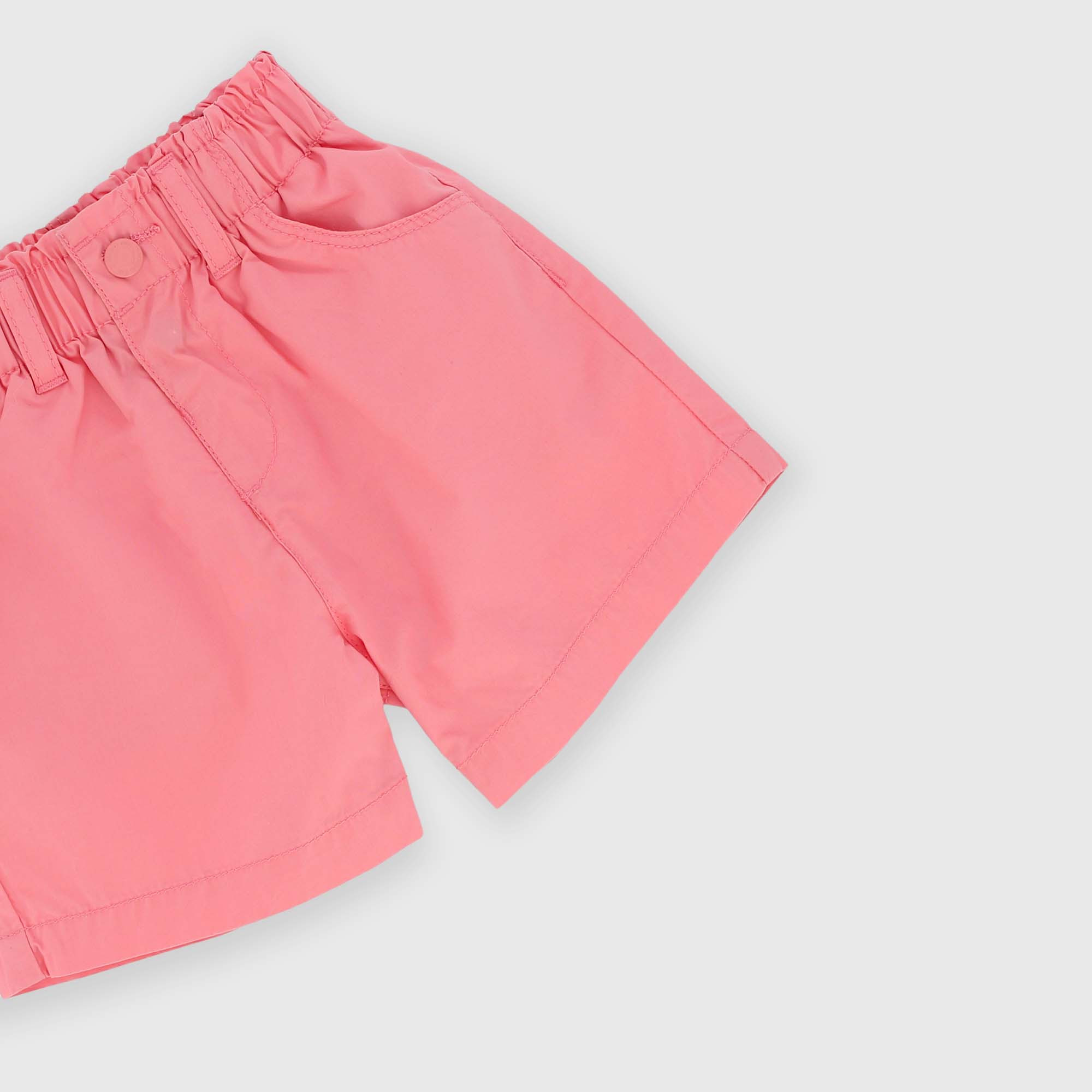 Pantalones cortos de popelina con cintura elástica. Cierre con botón y cremallera. Bolsillos en la parte delantera y bolsillos de parche en la parte posterior.