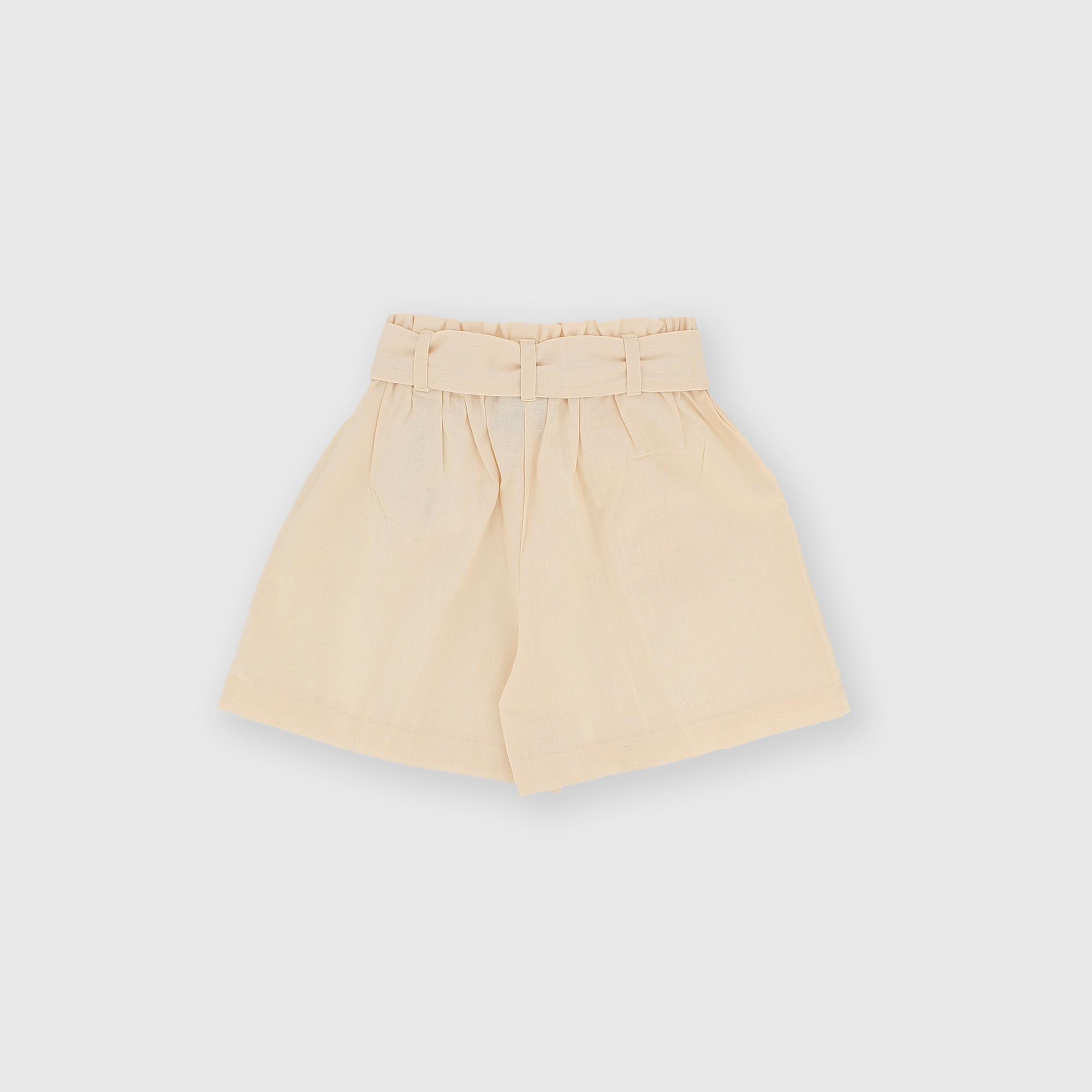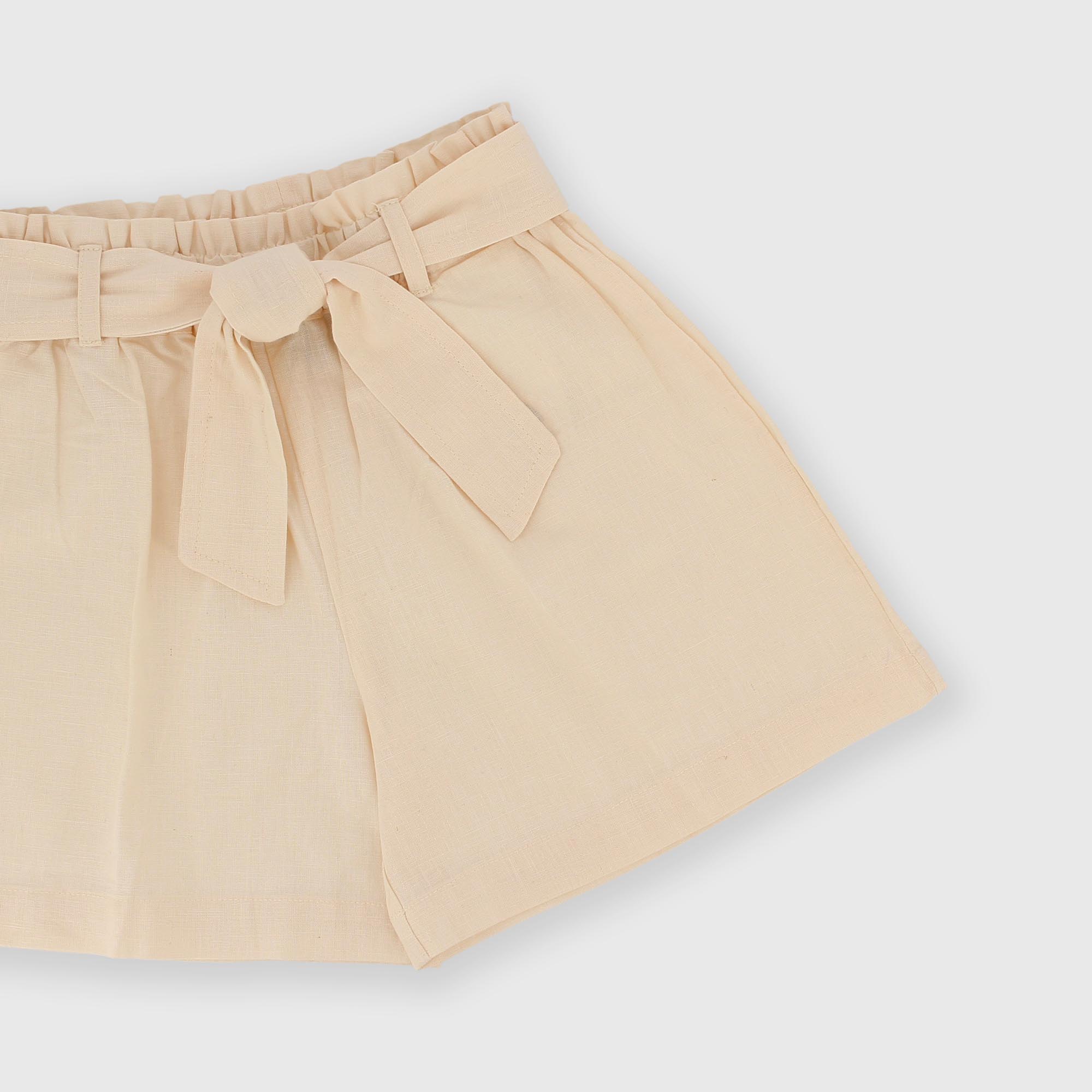 Pantalón corto de algodón-lino con cintura elástica y trabillas. Cinta a juego.