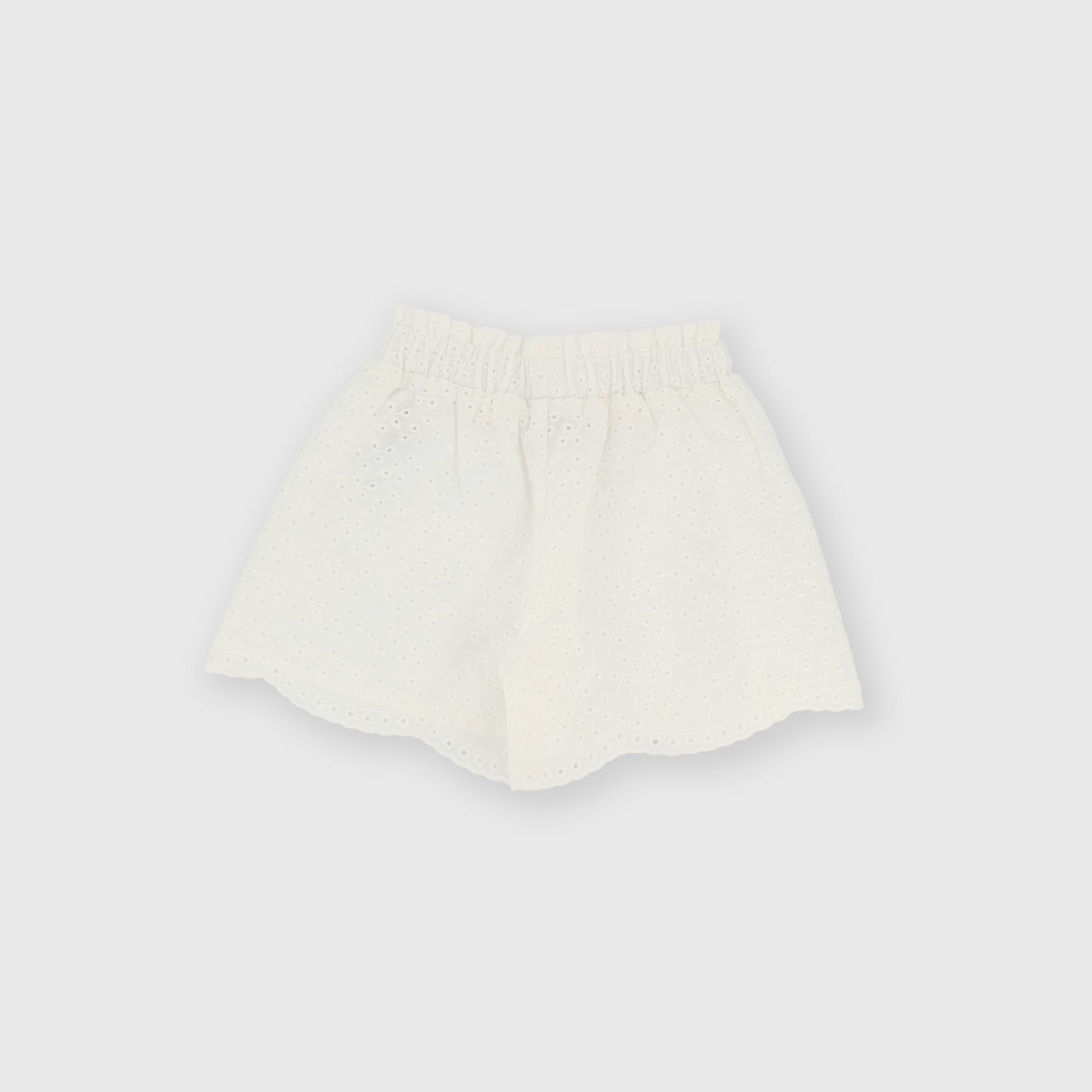 Pantalón corto de encaje de San Galo con cintura elástica. Forro interior.