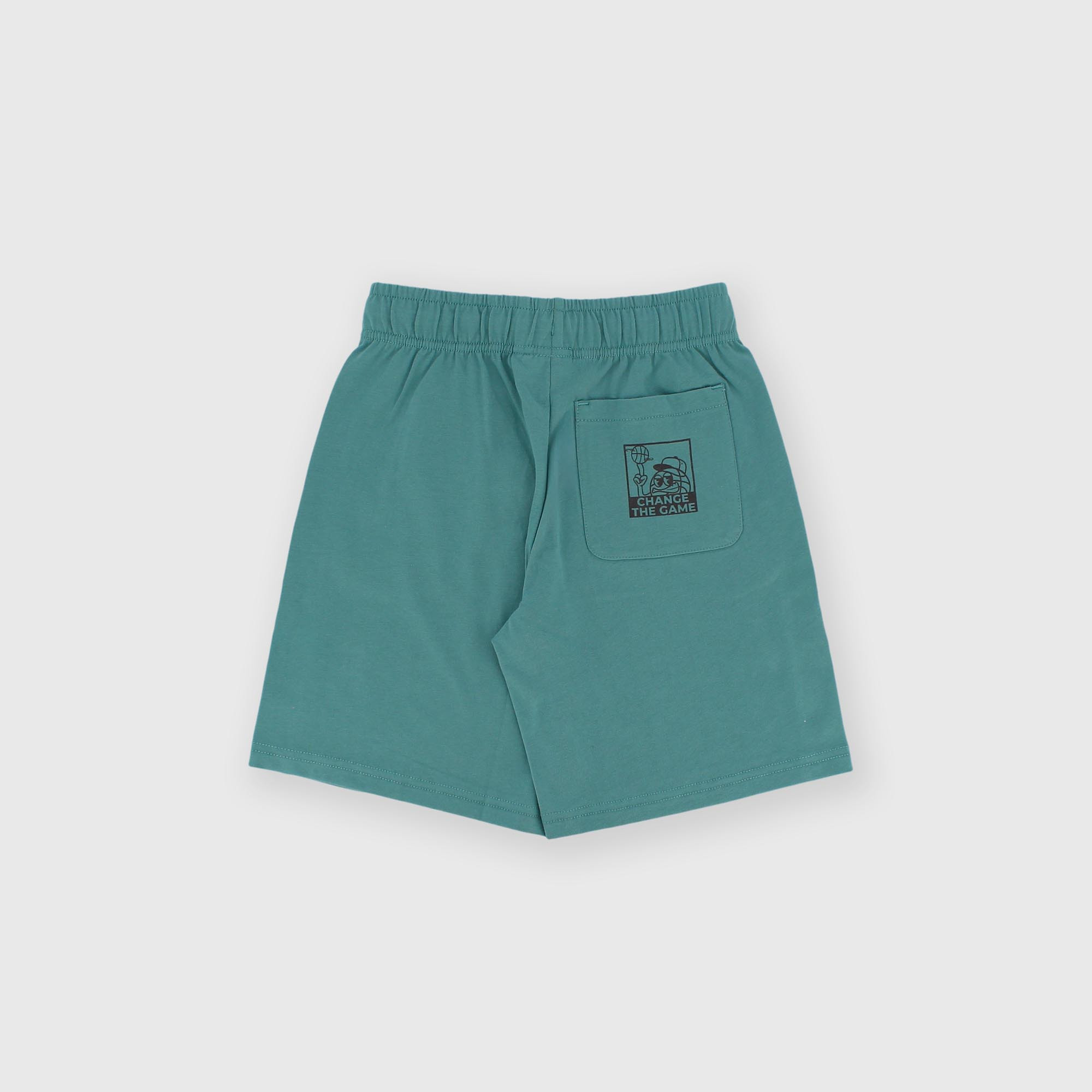Bermunda de tejido jersey con cintura elástica y cordones delanteros. Bolsillos ocultos en la parte delantera y bolsillos parche efecto goma en la parte trasera.