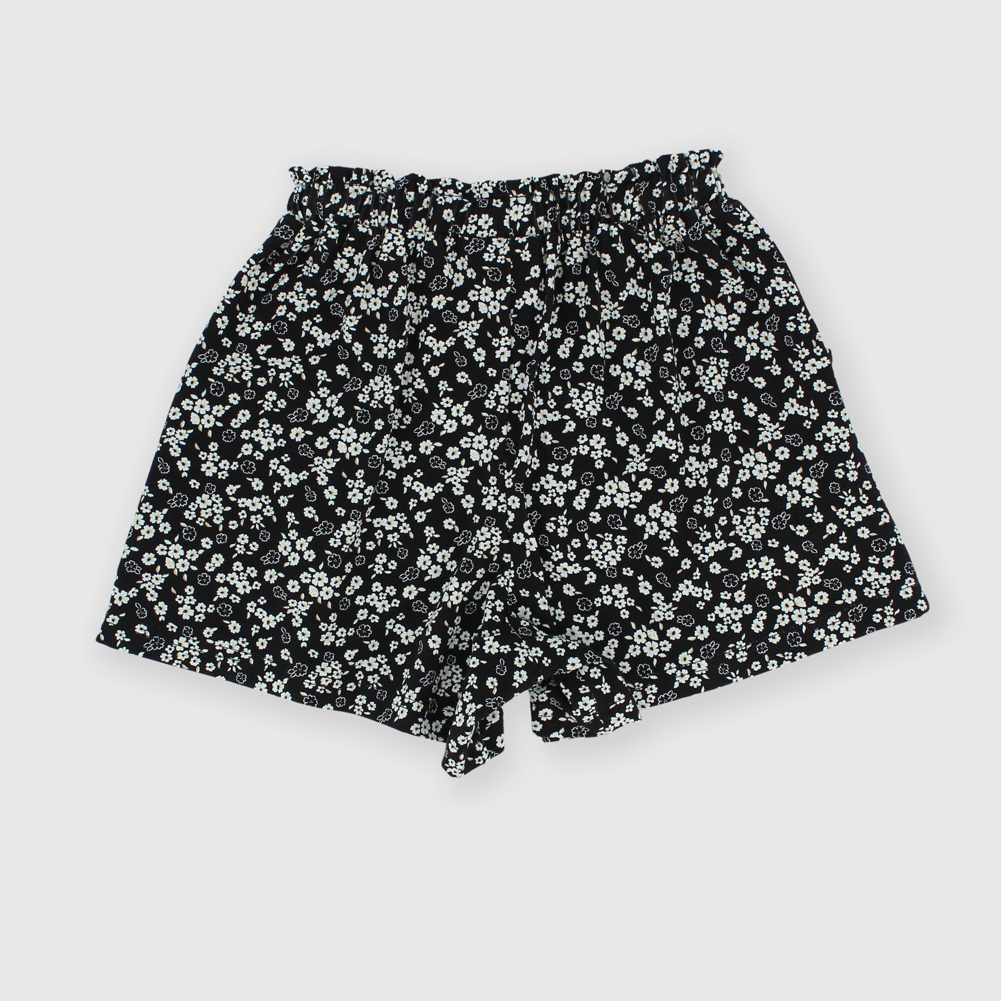 Pantalones cortos de viscosa con cintura elástica. Bolsillos laterales. Flores estampadas all over.