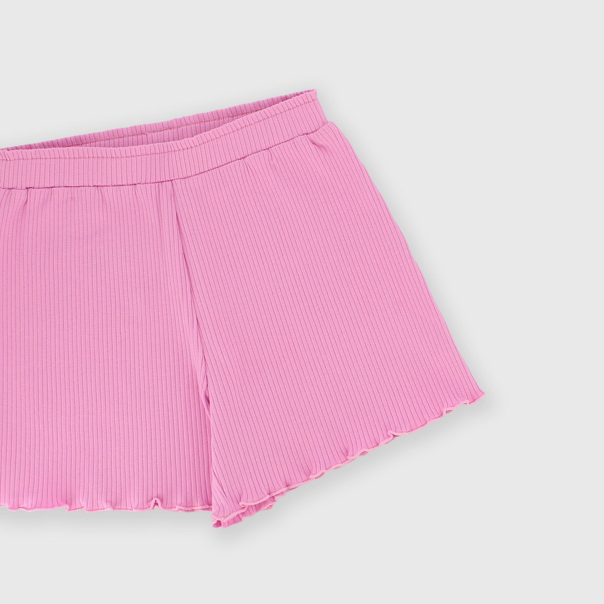 Pantalones cortos canalé con cintura elástica. Acabados en punto bambola.
