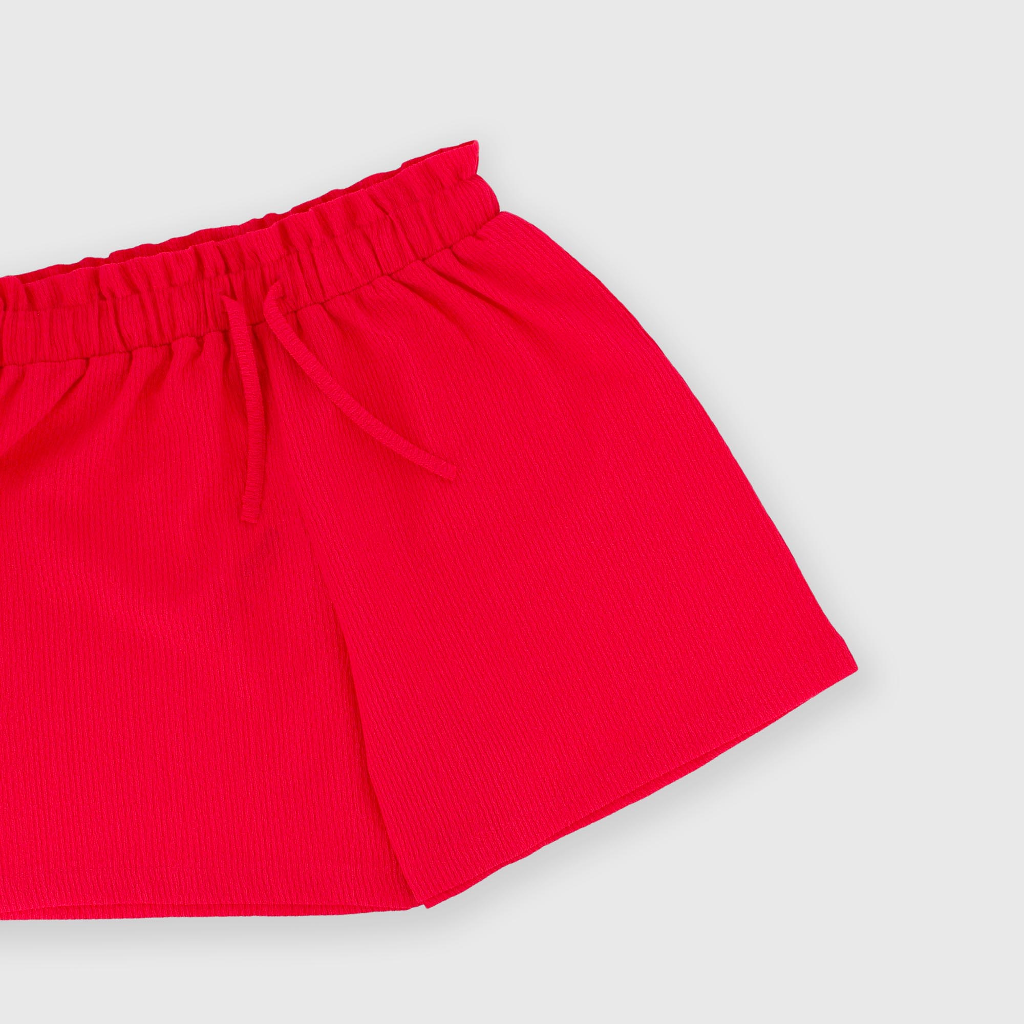 Pantalón corto de seersucker con cintura elástica y cordones frontales.