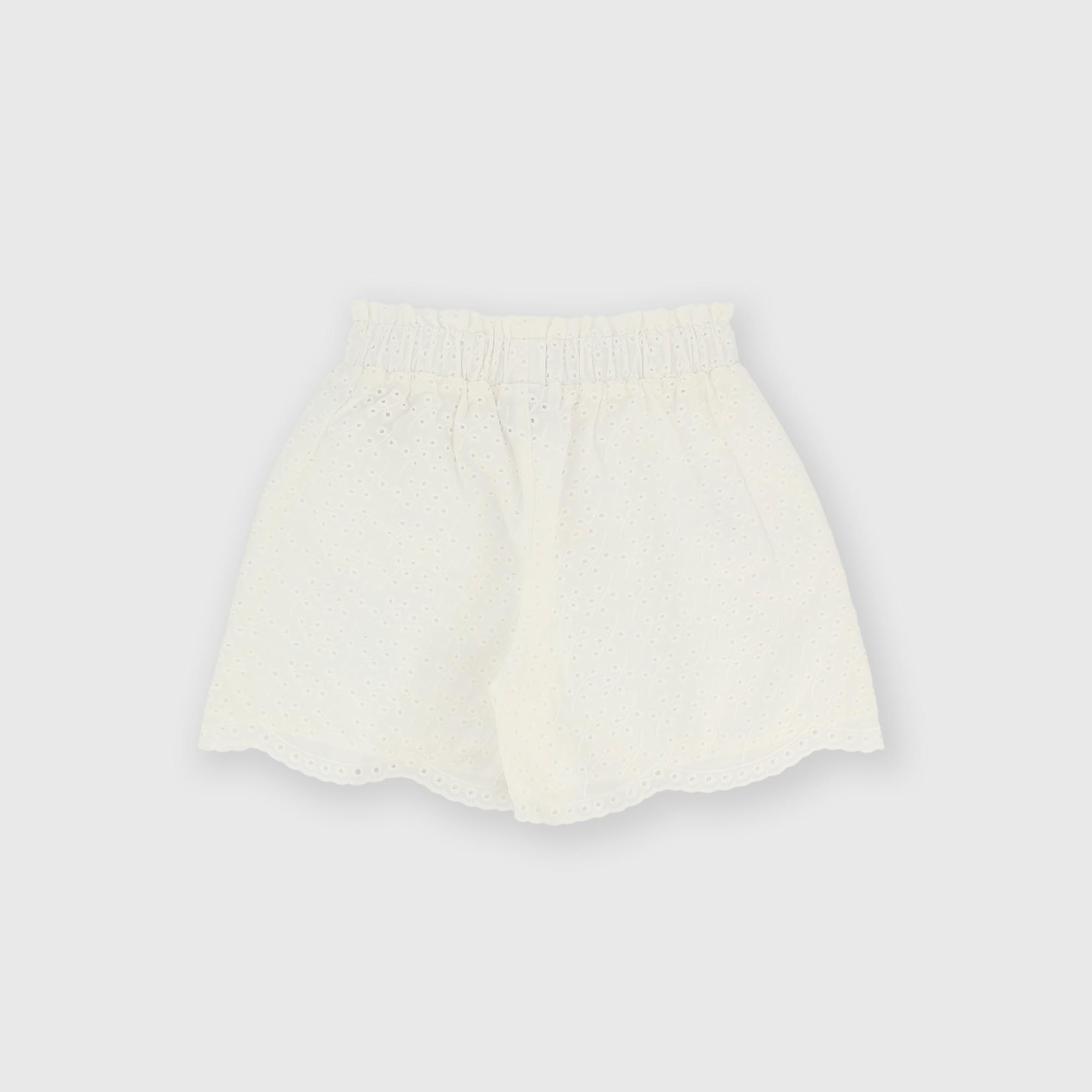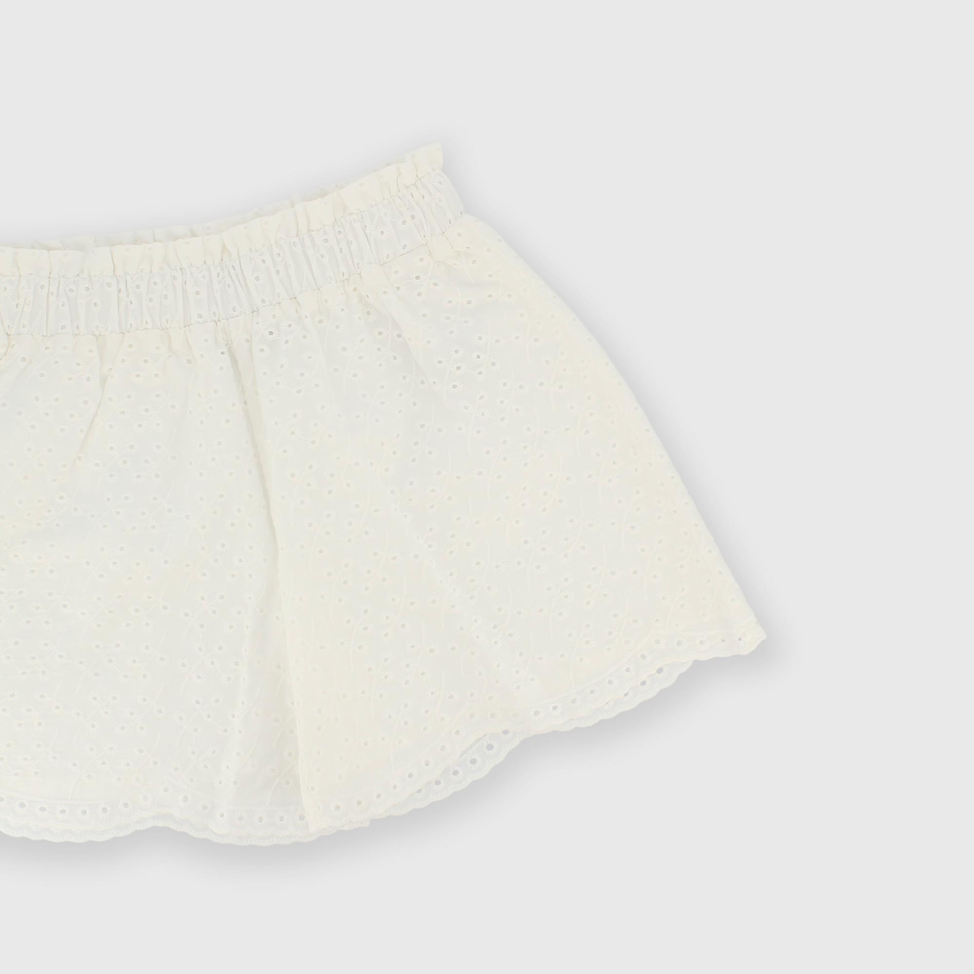 Pantalón corto de encaje de san gallen para niña blanco