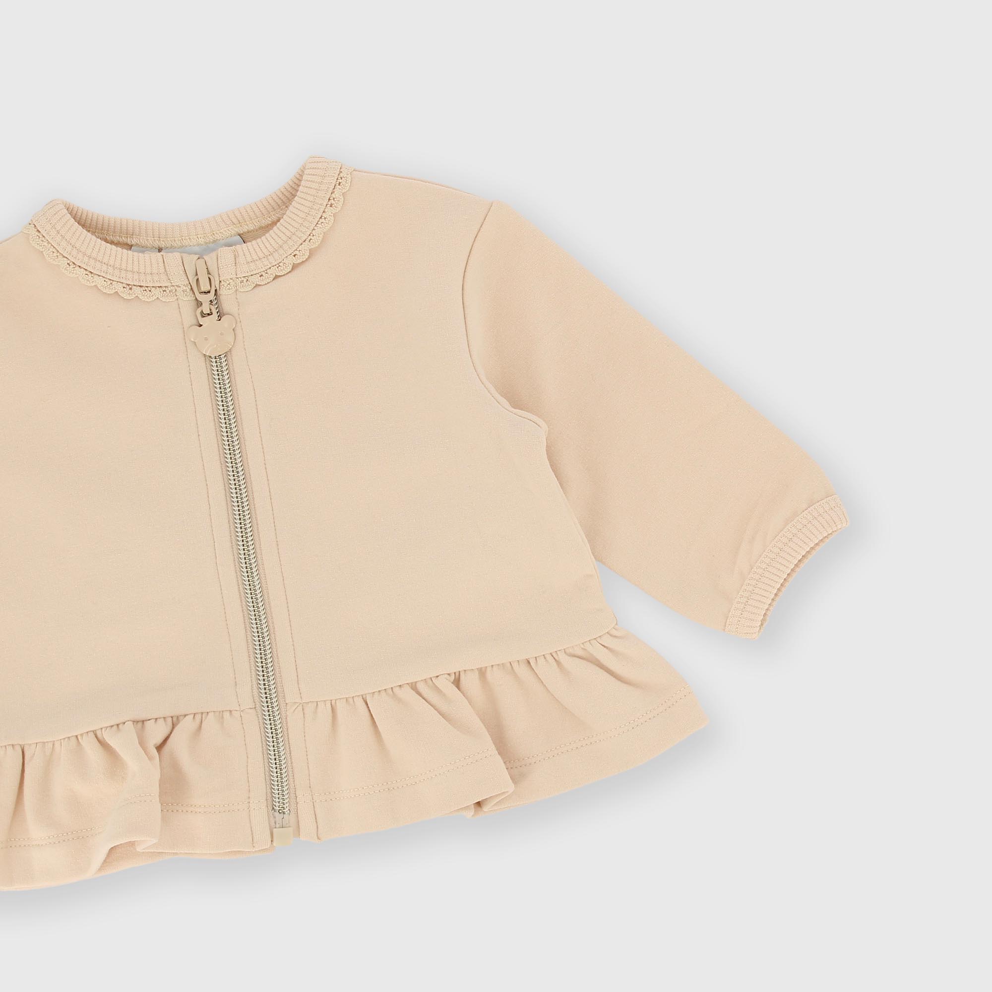 Camiseta con cremallera de felpa para niña beige