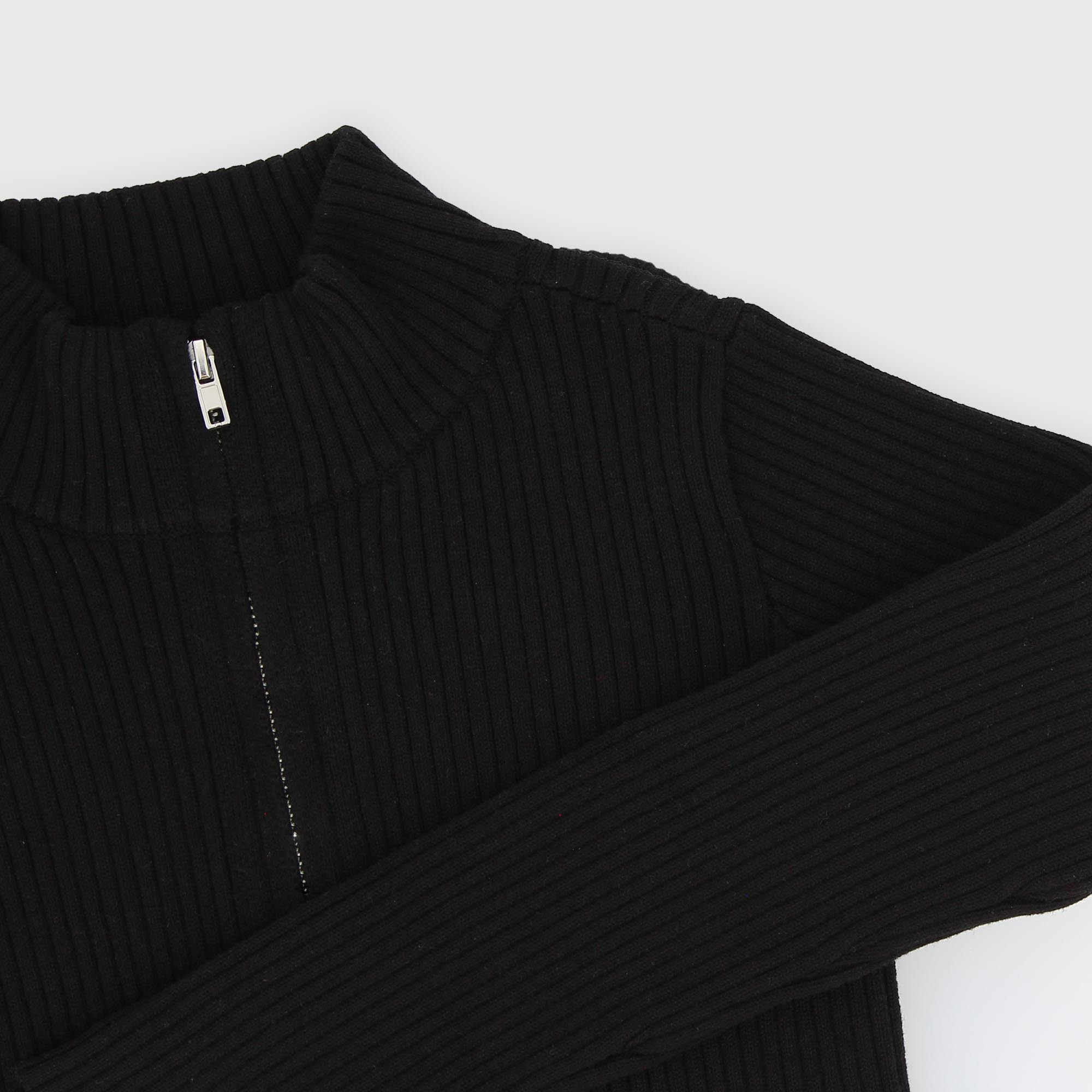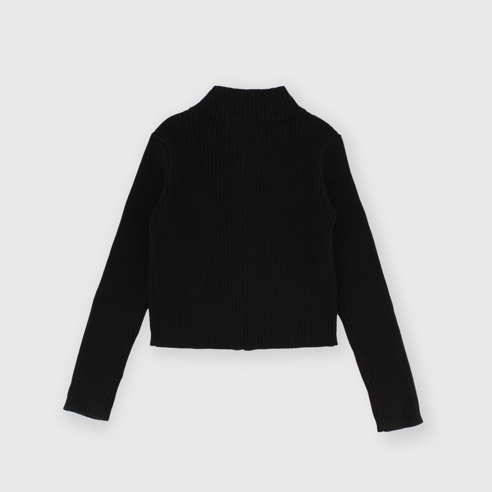 Rebeca de punto suave con mangas largas. Cierre con cremallera en la parte delantera. Punto canalé.