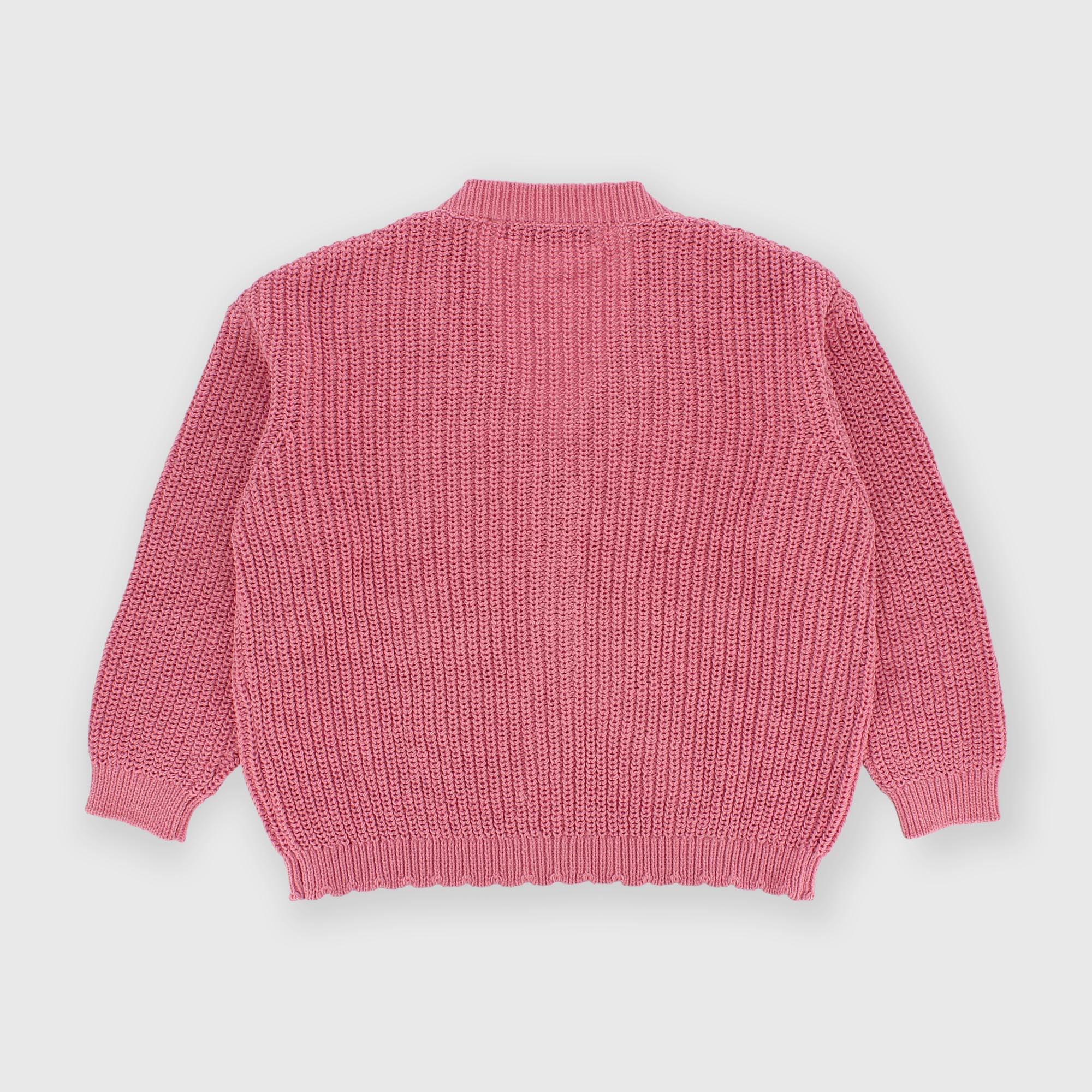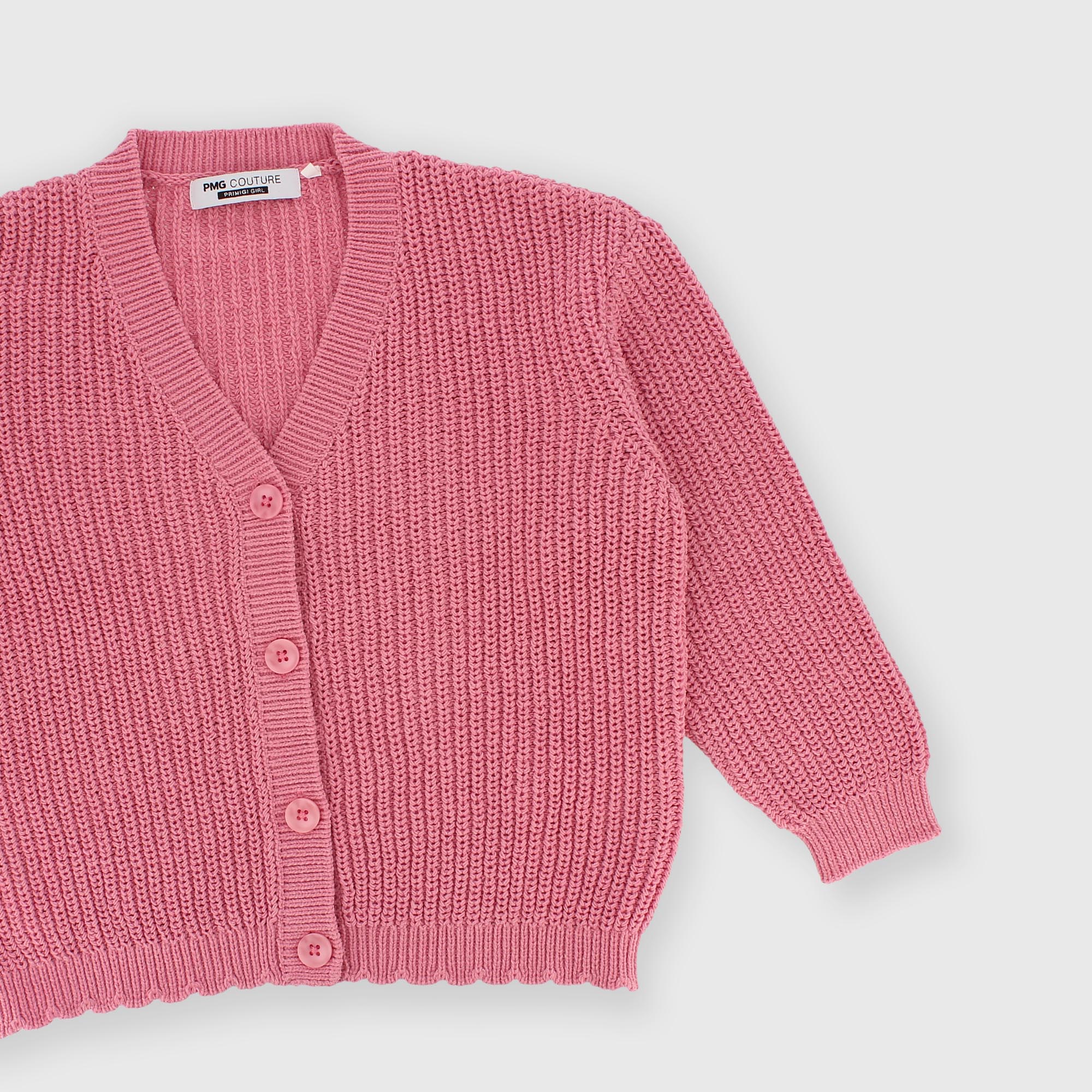 Rebeca de suave punto con escote en pico, mangas largas. Cierre con botones en la parte delantera.
