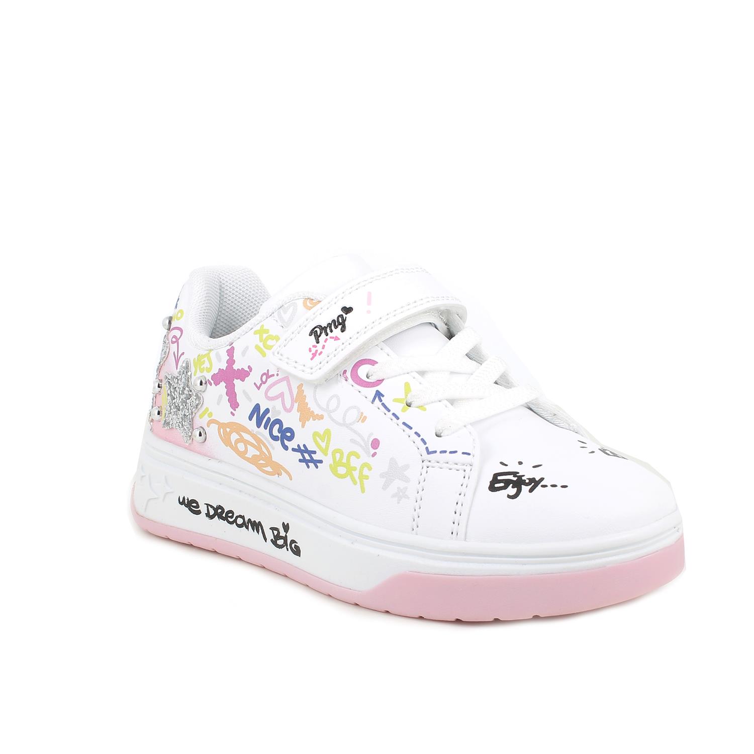 Zapatillas deportivas de gran personalidad que nunca pasan desapercibidas. Los detalles coloridos tipo graffiti y los adornos brillantes son perfectos para las chicas a la moda. Los cordones elásticos y el velcro aseguran una sujeción correcta y ajustable, mientras que la plantilla extraíble facilita la limpieza y manutención. Estos zapatos tienen una suela muy resitente y antideslizante.