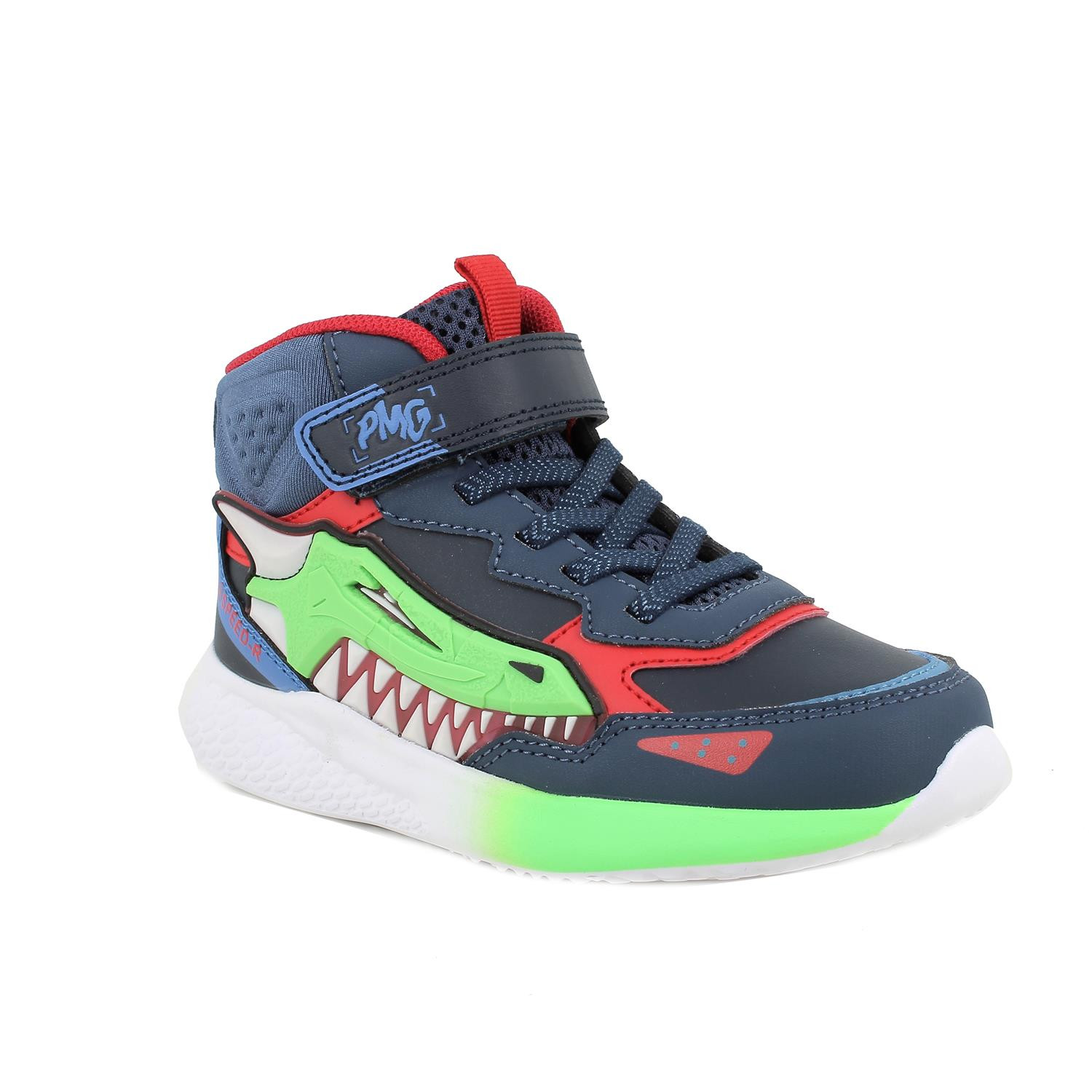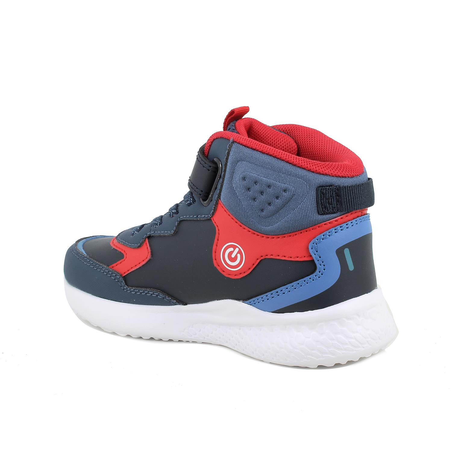 Deportivas altas para niños con luces, ideales para dar brillo a los días de invierno. Gracias al botón de encendido y apagado, el niño puede elegir cuándo se iluminan sus deportivas. Los materiales de la pala y de la suela son ultraligeros y se adaptan a la horma del pie. La flexibilidad de la suela facilita el caminar y los hace cómodos para usar durante todo el día. La plantilla anatómica es extraíble y está recubierta de piel para asegurar transpirabilidad e higiene