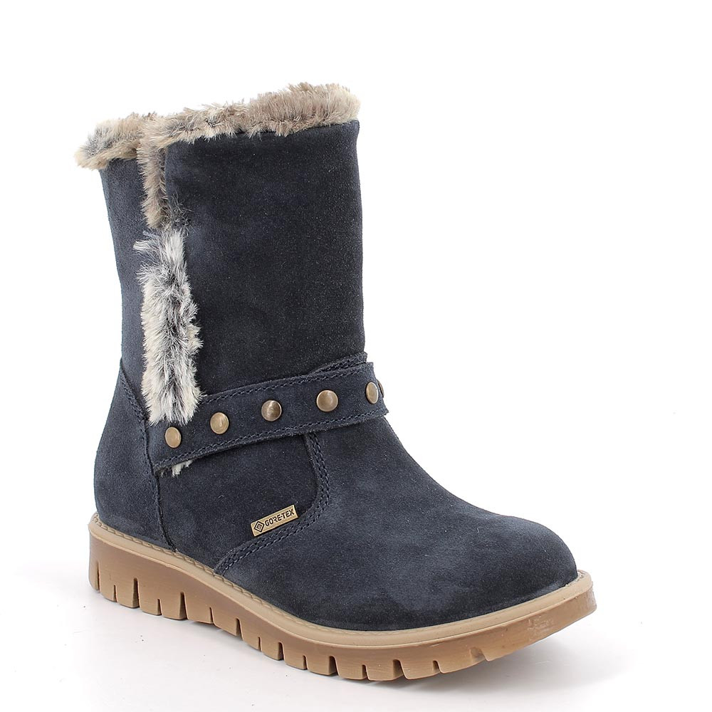 Prácticos botines de piel ante para el colegio, pero también al aire libre. Realizados para ser puesto en cualquier condición climática. Están dotados de membrana GORE-TEX que hace una barrera contra el frío y la humedad. La puntera redondeada deja espacio de movimientos a los dedos. La suela es altamente flexible y ligerísima. El pie apoya en una confortable plantilla que puede extraerse para una mayor higiene.