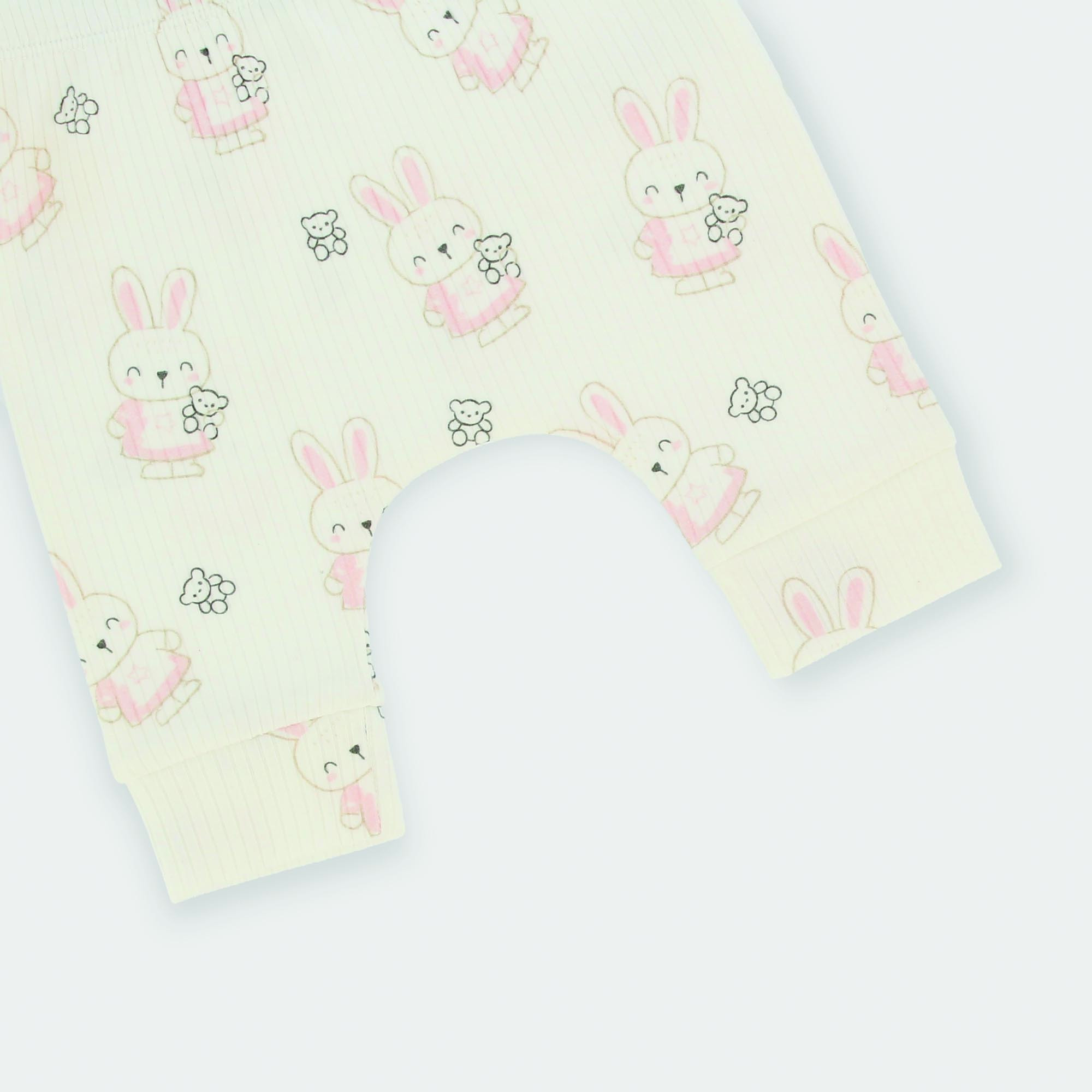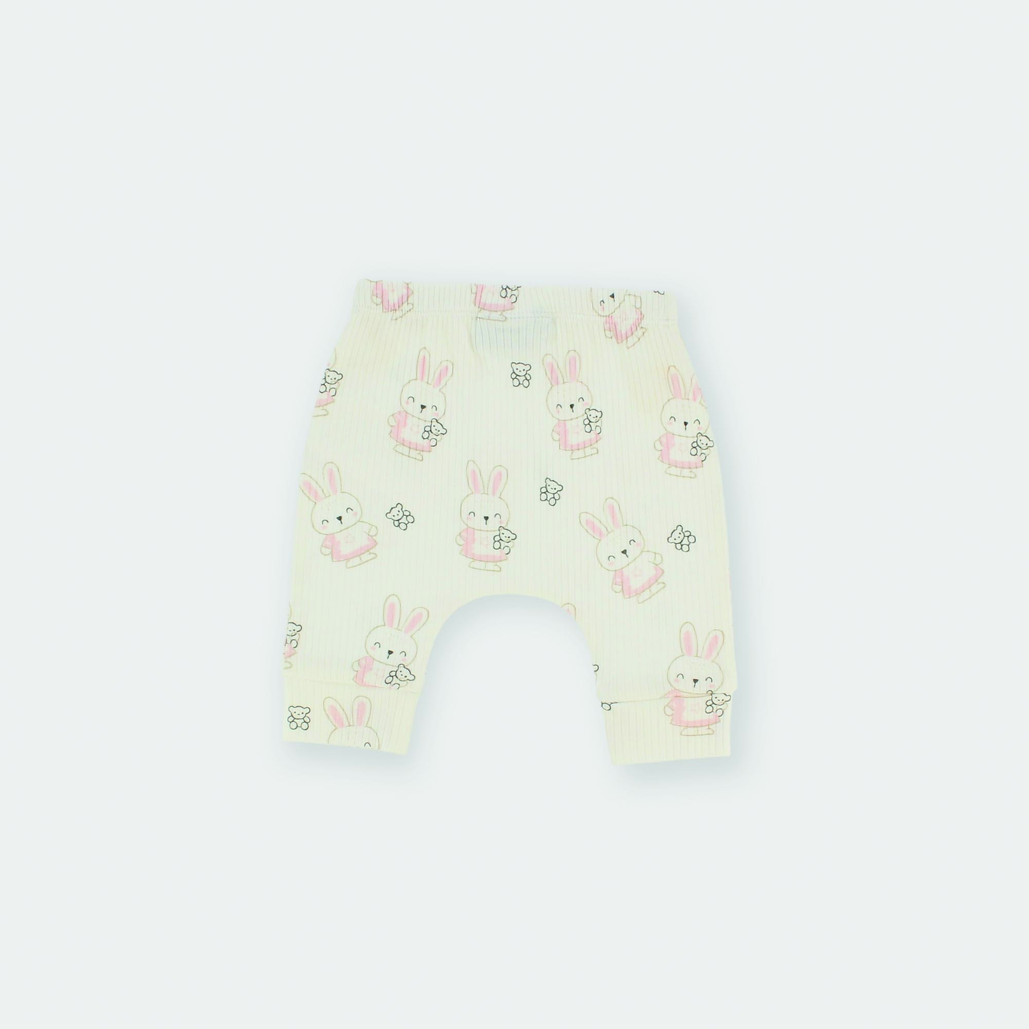 Pantalón canalé con cintura elástica. Etsmpado integral de conejitos y ositos.