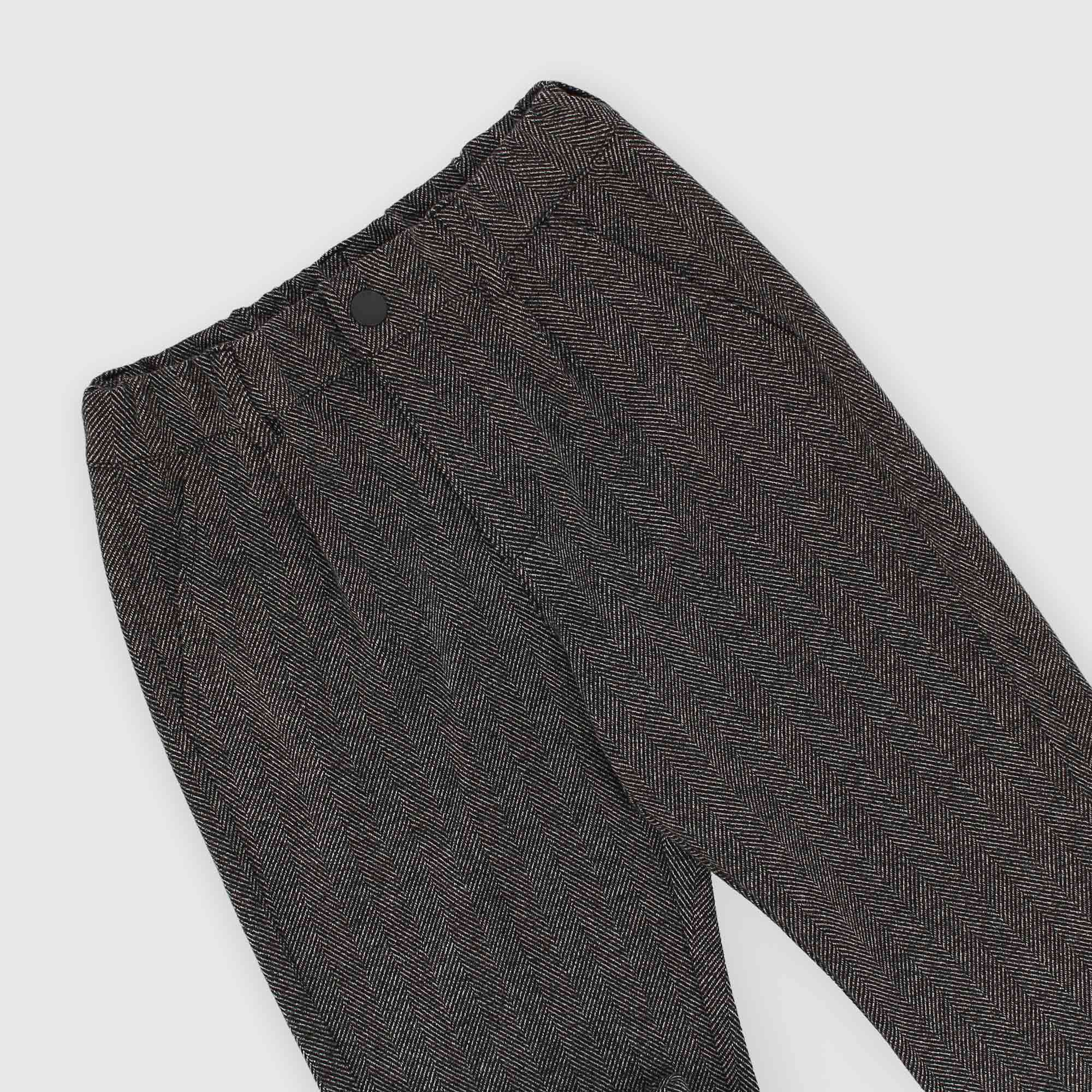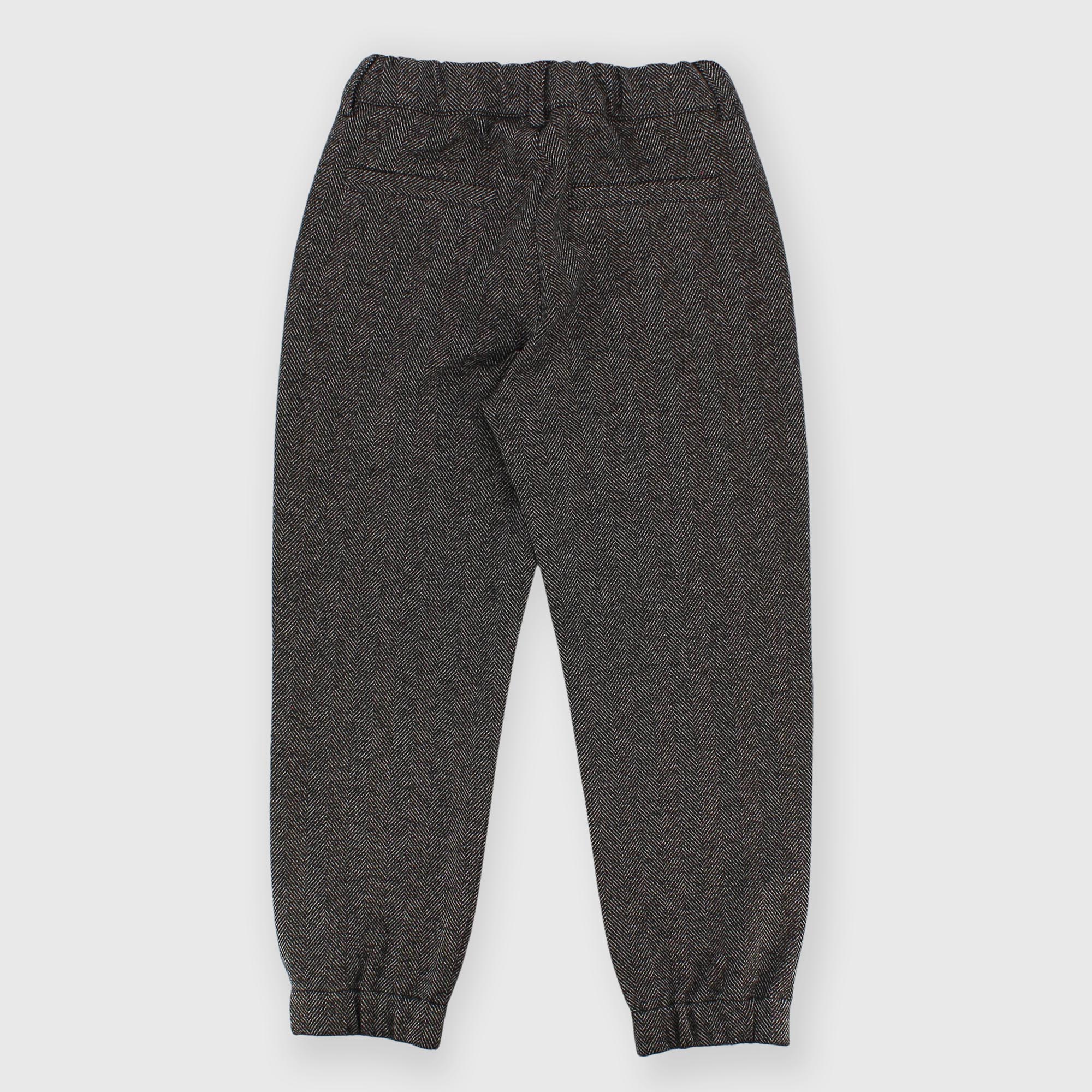 Pantalón de tejido espigado con cintura ajustable en la parte interior. Cierre con botón. Bolsillos franceses delanteros y bolsillos ojal en la parte trasera. Parte inferior elástica.