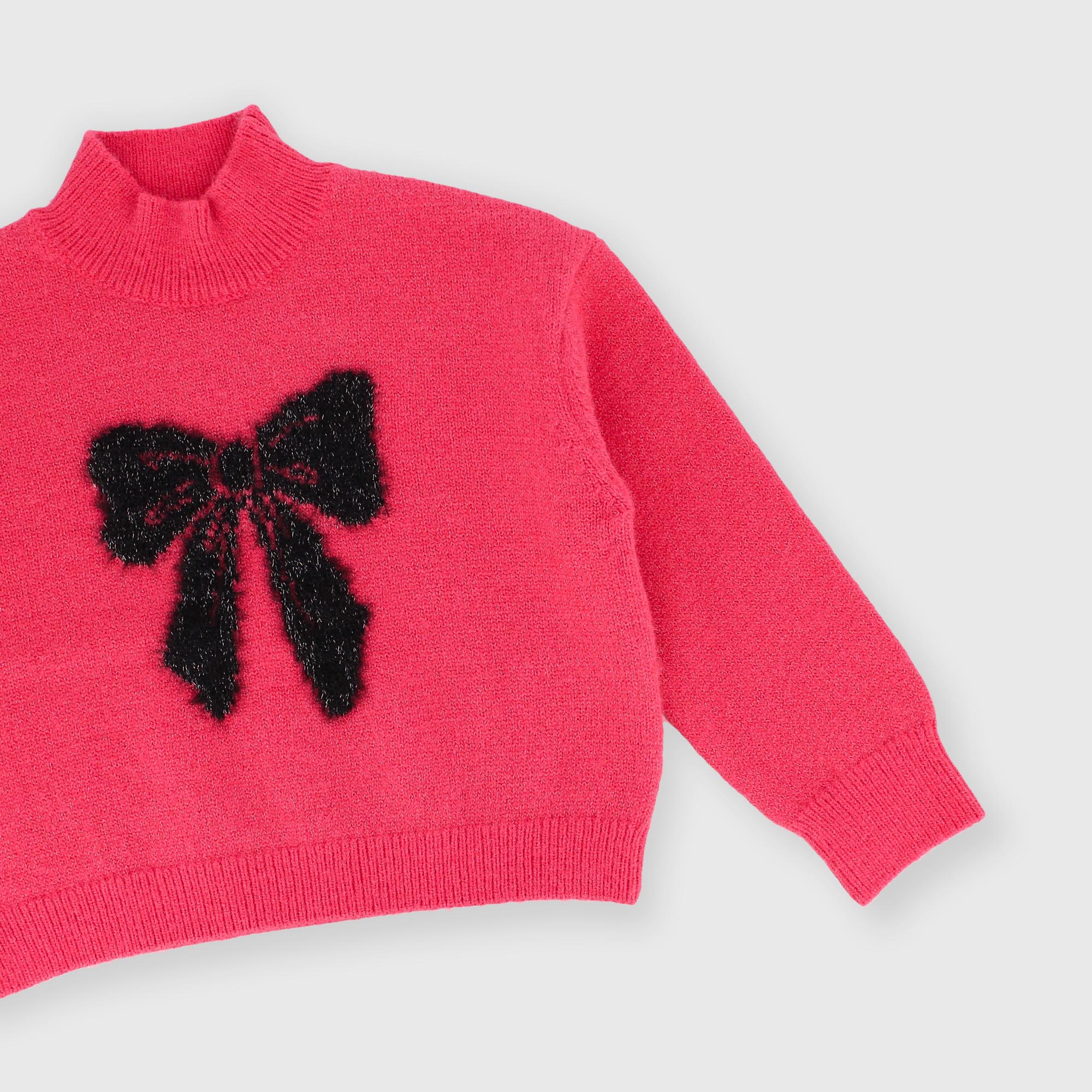 Jersey de punto suave con cuello medio y mangas largas. Acabado jacquard con lazo.