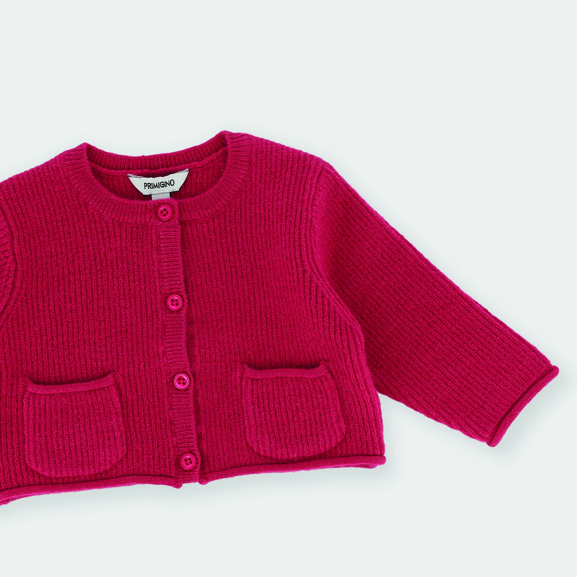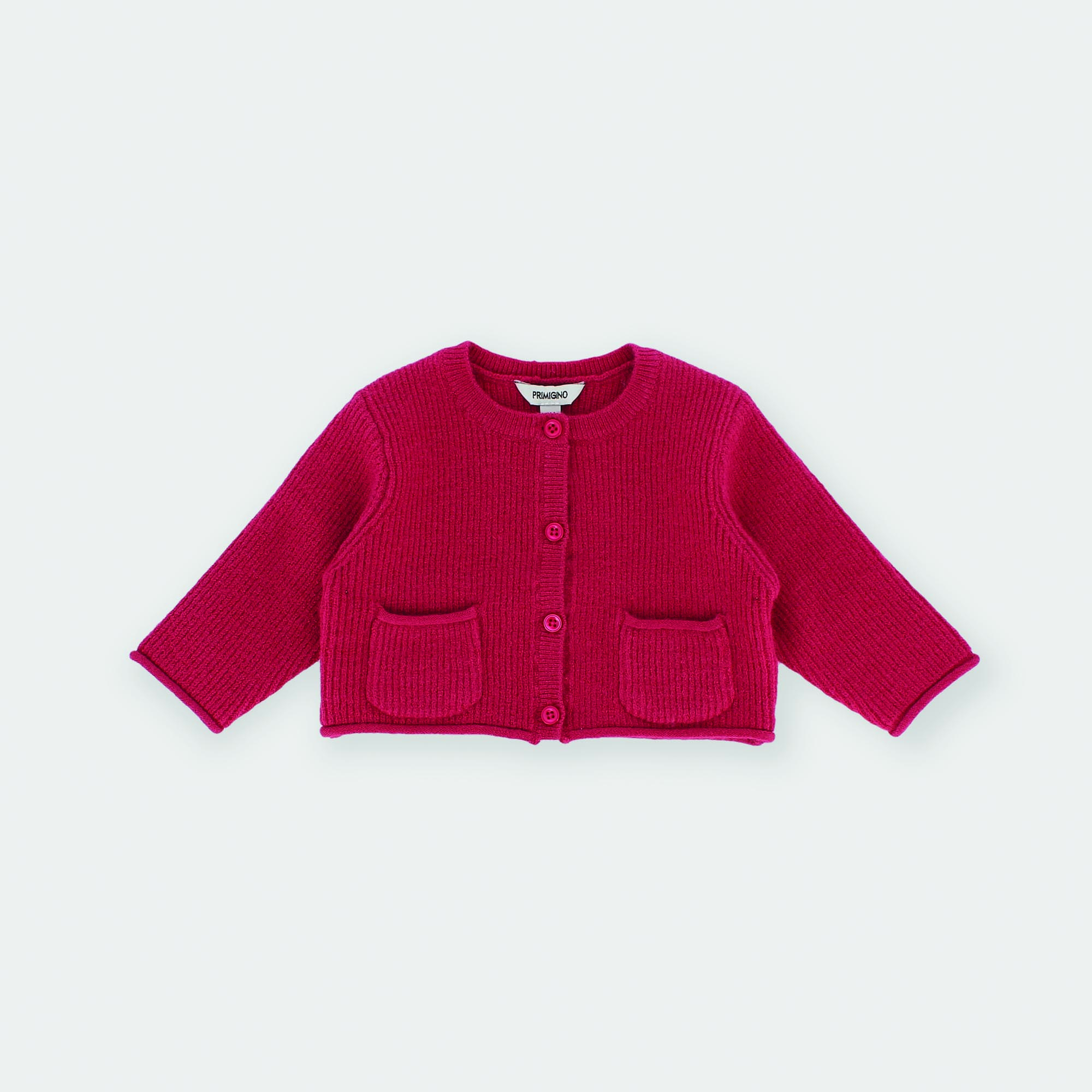 Rebeca de punto suave con mangas largas. Cierre con botones en la parte delantera. Bolsillos delanteros.