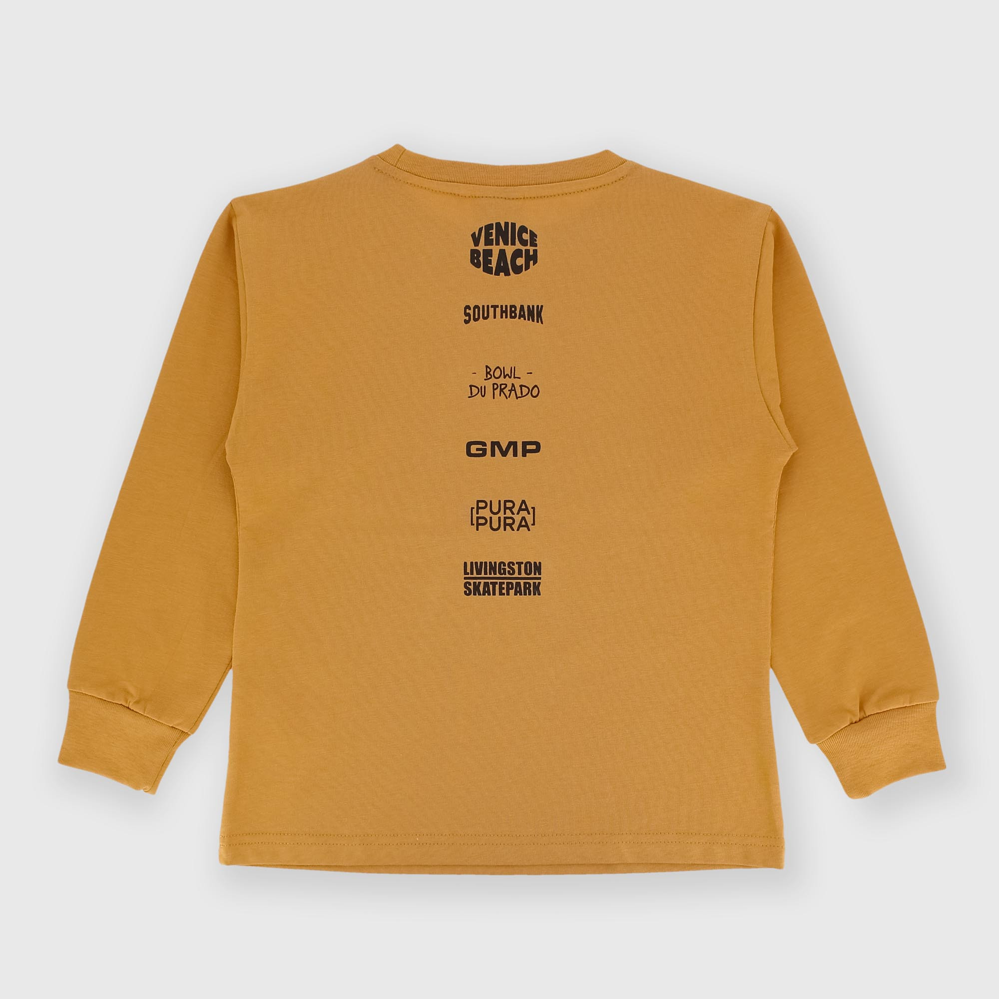 Camiseta de punto de jersey con cuello redondo y mangas largas. Parte delantera y trasera estampada. Cuello y puños canalé.