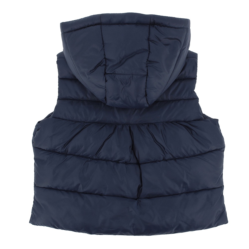 Gilet en nylon avec capuche. Fermeture à glissière avant. Poches avant. Bouclez sur le fond.