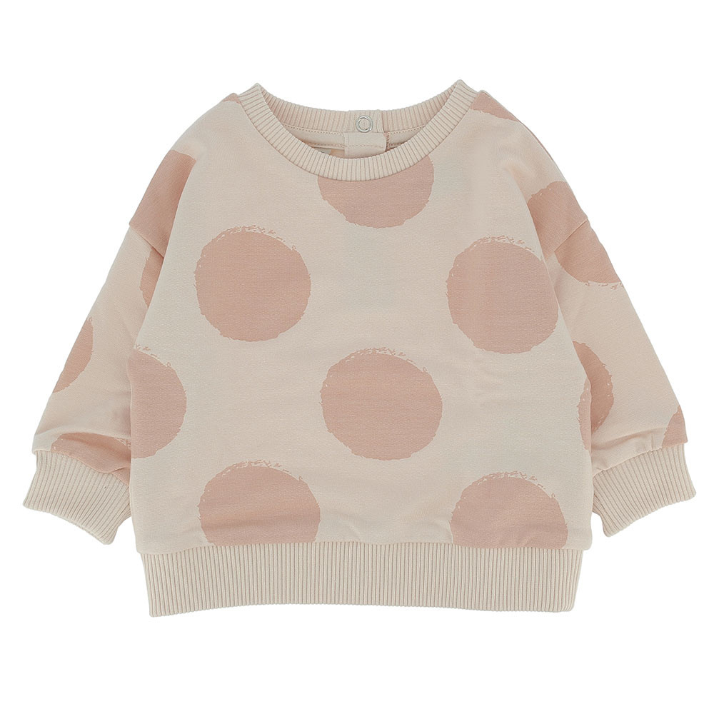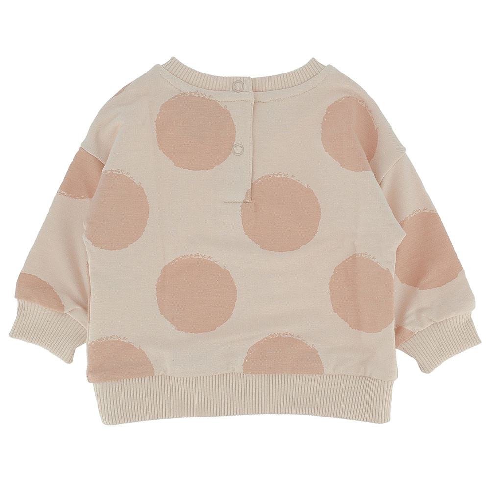 Sweat-shirt à manches longues à col d'équipage. Fermeture arrière avec boutons pression. Fond nervu ré et impression all-over avec macro-pois. Ce vêtement est éco-durable car il est fabriqué principalement avec des fibres naturelles et organiques.