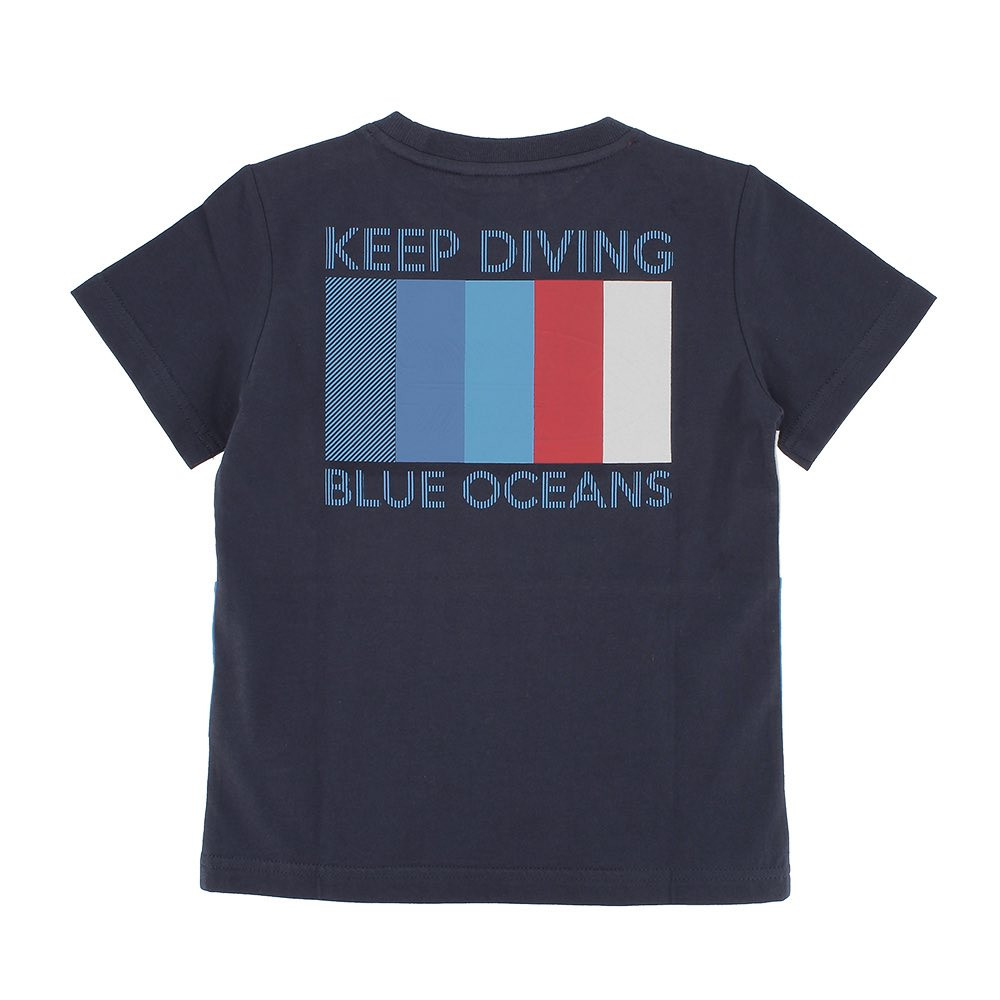 T-shirt jersey, col équipage, manches courtes. Bandes contrastées. Impression avant et arrière sur le thème de l'océan avec des détails 3D.