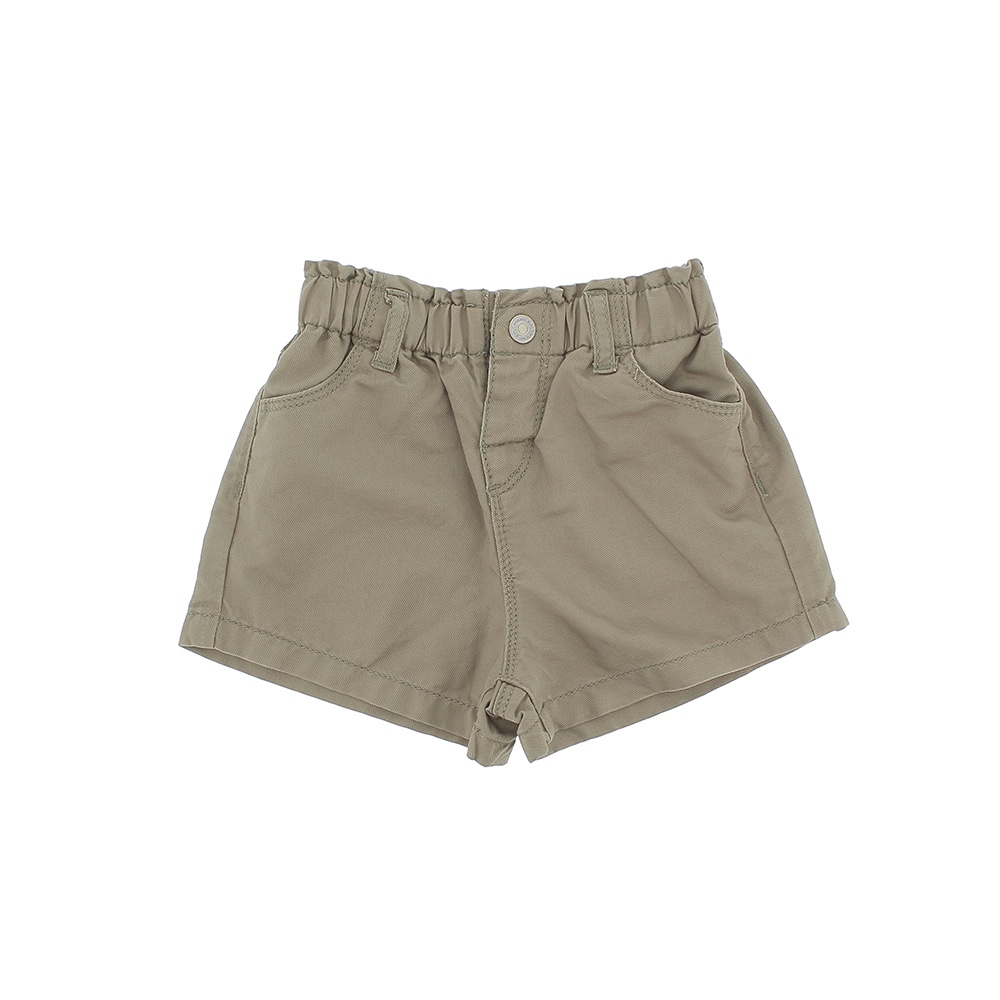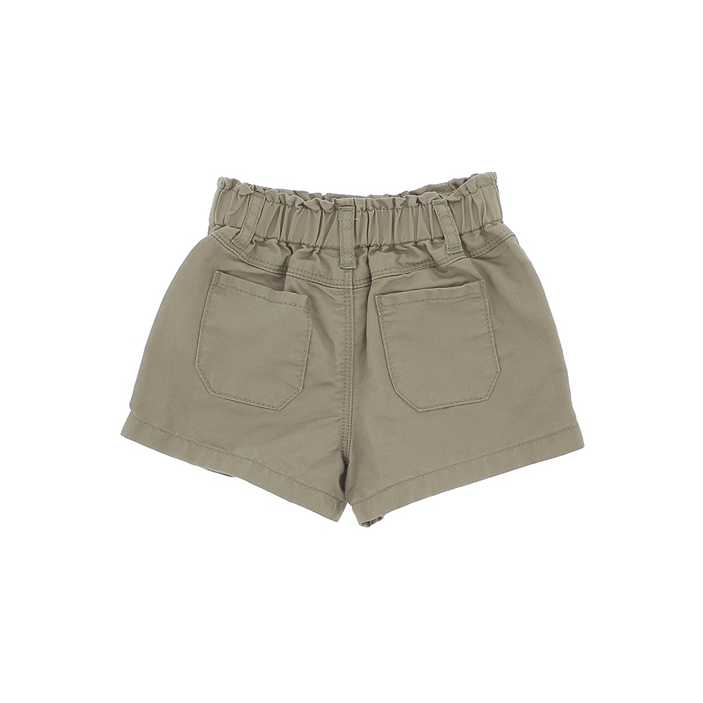 Short en lin et coton mélange tissu avec taille élastiquée. Bouton et fermeture automatique. Poches latérales et poches arrière.