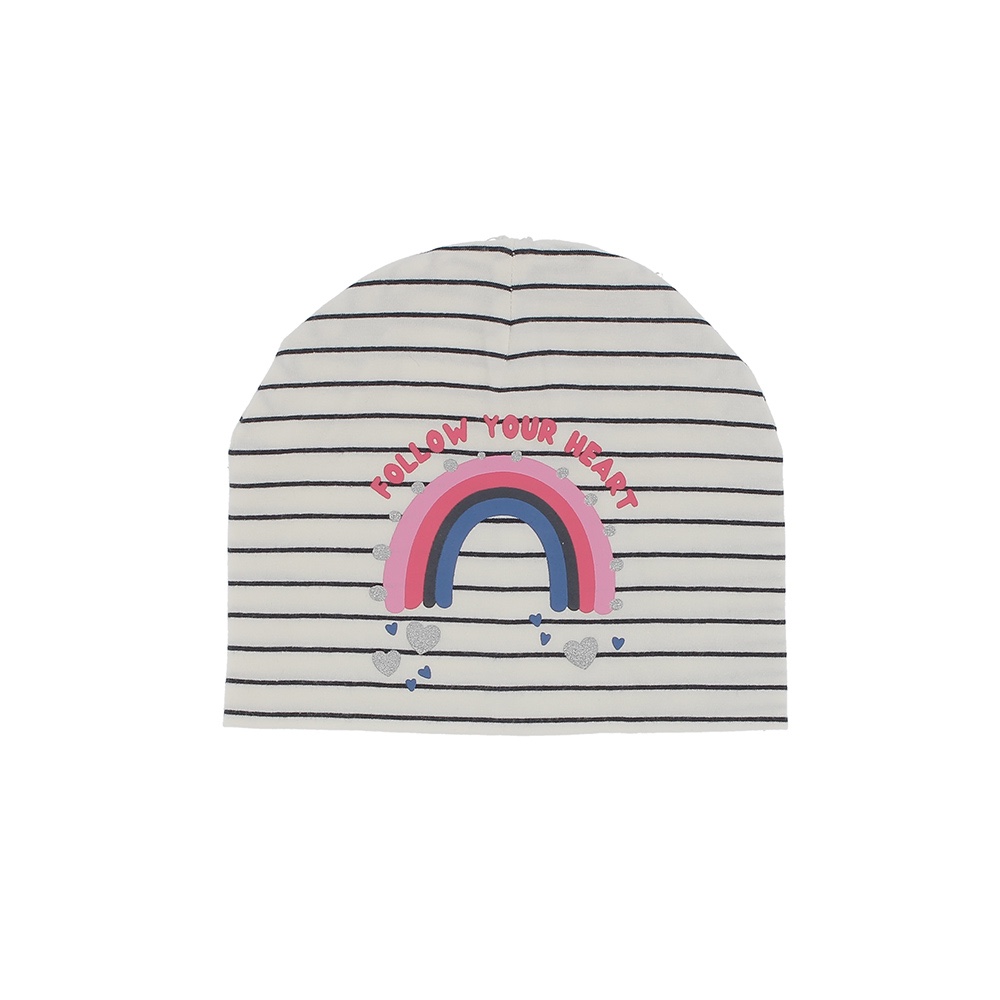 Casquette en jersey rayé avec imprimé frontal et détails scintillants.