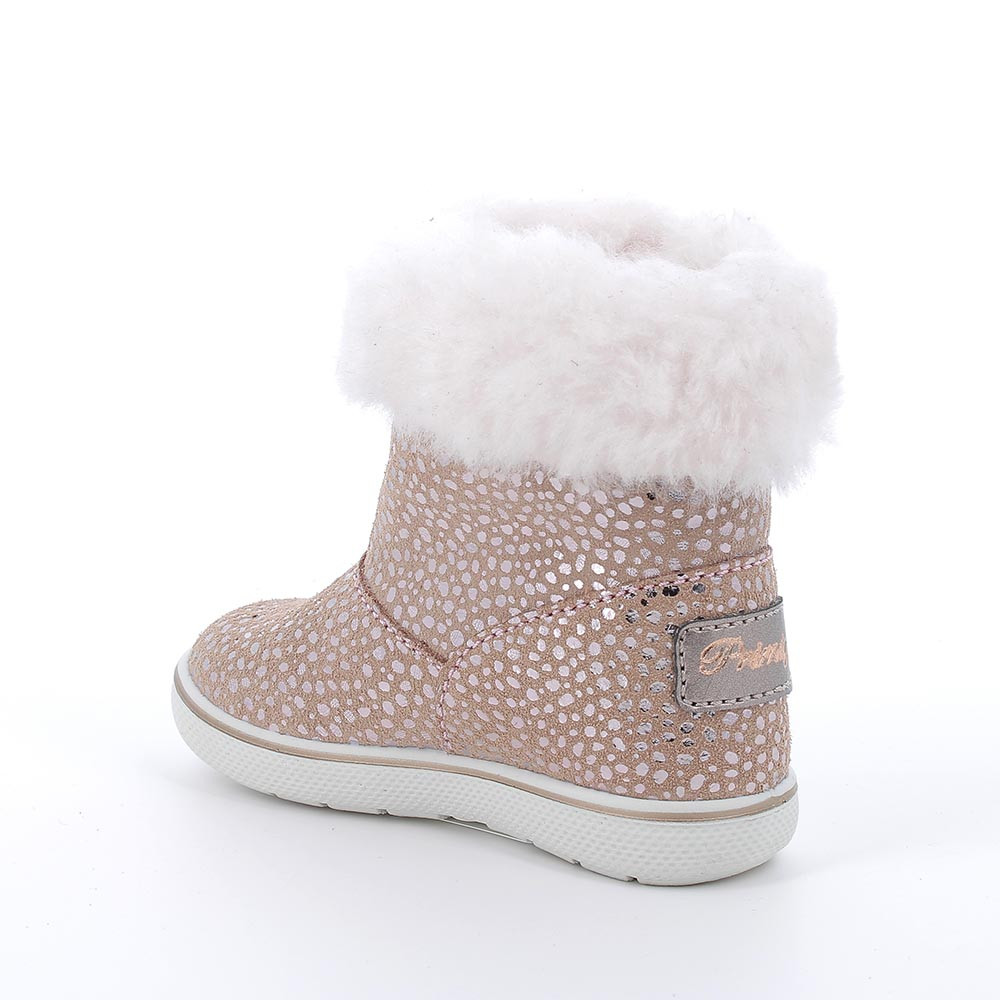 Boots premiers pas au look glam et captivant qui donnera une touche romantique aux tenues de l’hiver. La fermeture Velcro pratique les rend faciles à porter, même pour les filles qui veulent commencer à s’habiller toutes seules. Les pieds sont enveloppés dans une étreinte chaleureuse et n’auront pas peur du froid. Un confort maximal est garanti par la semelle à forme de boîte qui est stable, légère et très flexible. La semelle intérieure anatomique est amovible et recouverte de cuir pour assurer la transpirabilité et l’hygiène.