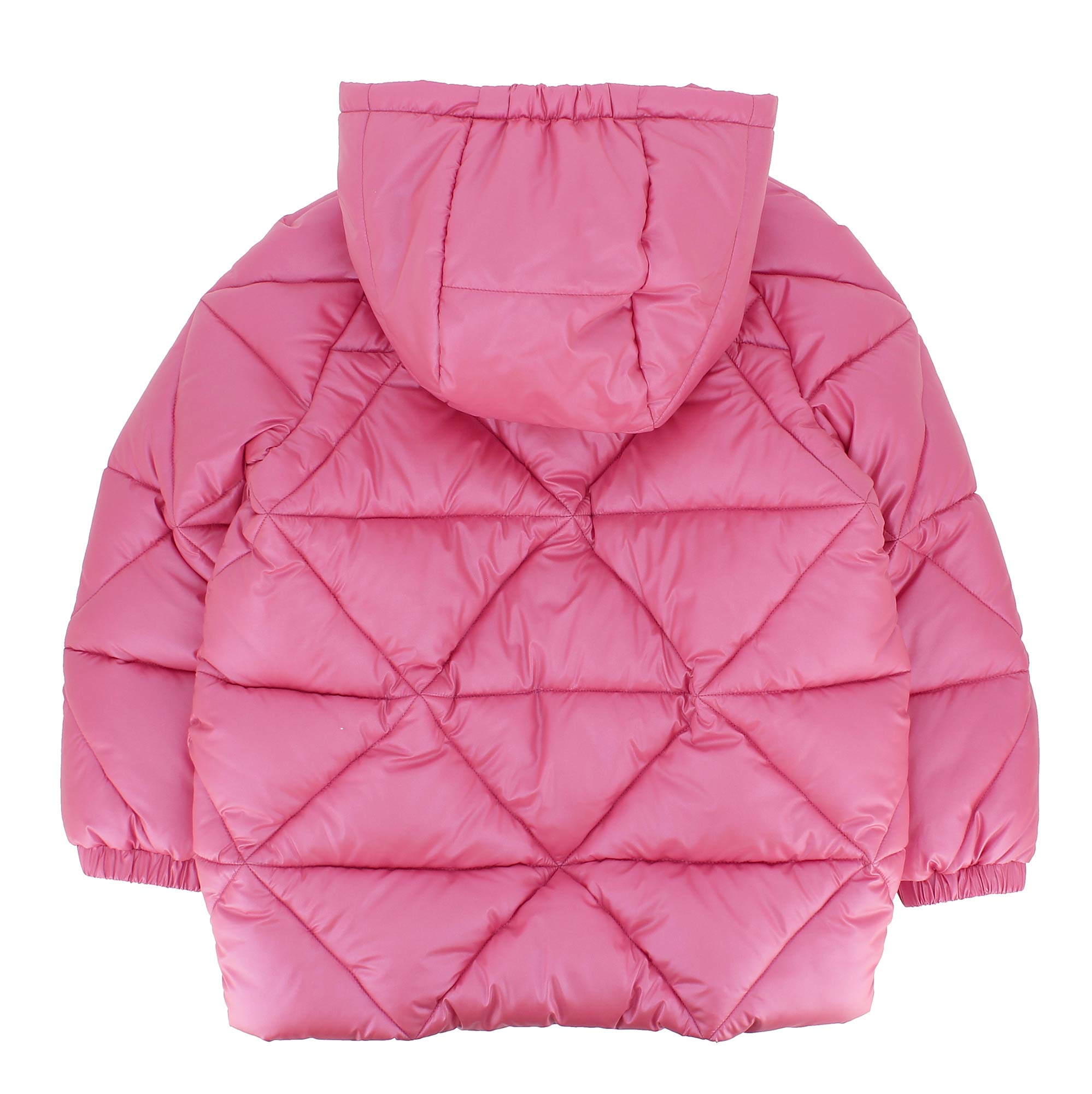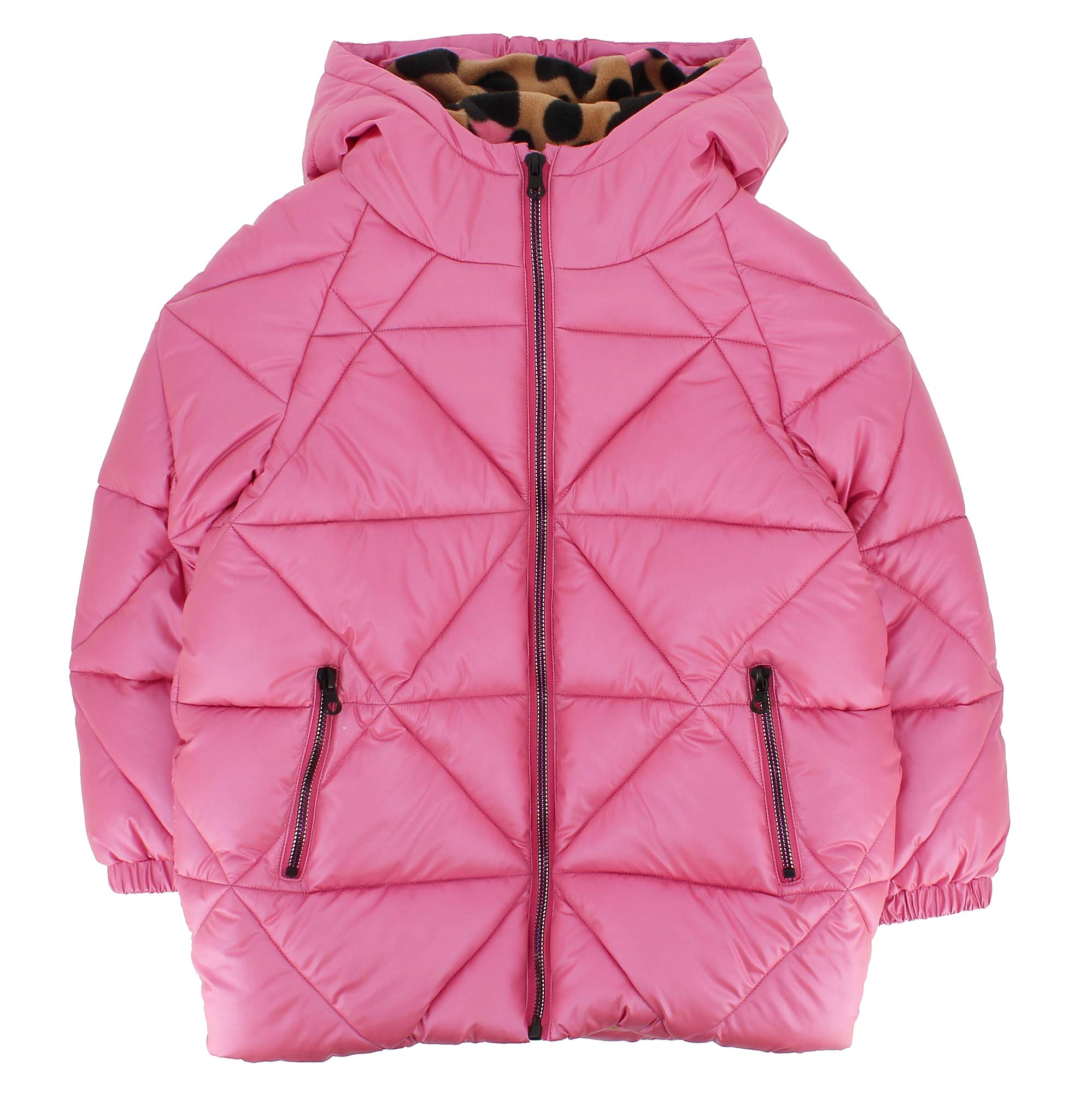 Veste en tissu irisé, avec capuche, manches longues. Fermeture à glissière sur le devant. Poches latérales avec zip. Doublure intérieure en pile avec motif animalier.