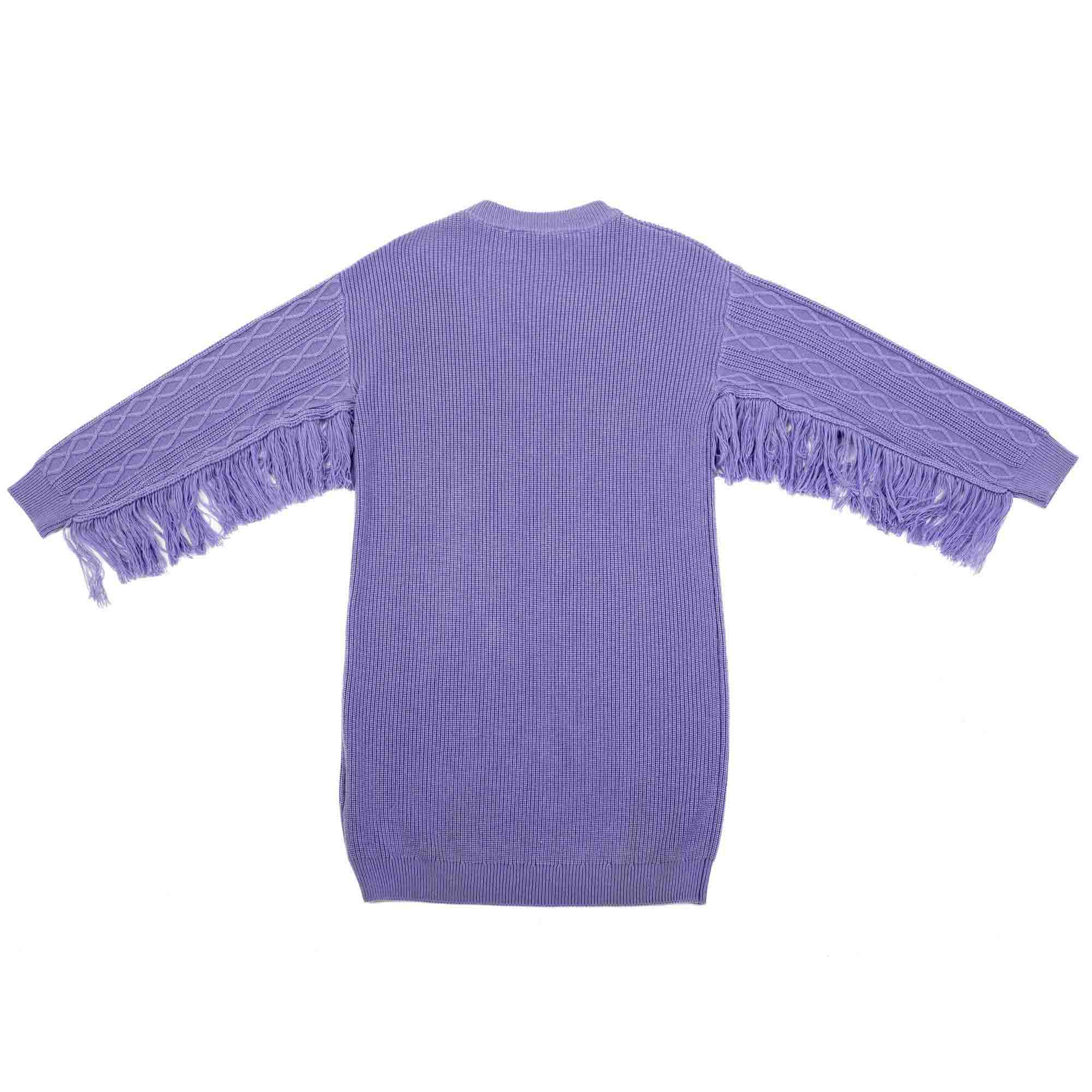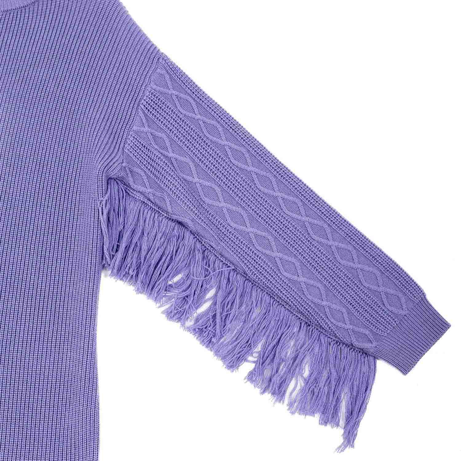 Robe tricotée, col d’équipage, manches longues. Manches tricotées avec application de franges.