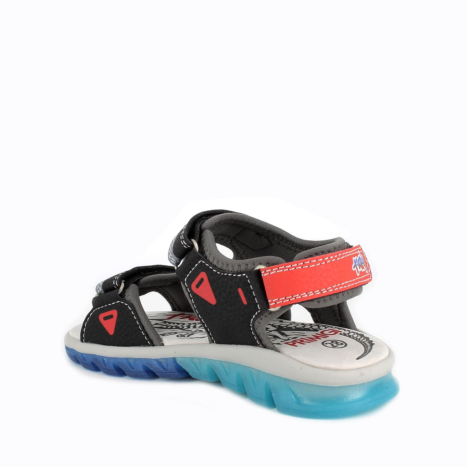 Des sandales pour enfants qui satisfont le désir de vacances et de liberté. Équipées de lumières, elles donnent de la vivacité et du plaisir à chaque pas. Le réglage velcro vous permet de les mettre rapidement et garantit un chausson parfait. Les matériaux utilisés sont légers et performants. La semelle ergonomique et flexible est accompagnée d’une première en cuir qui facilite la transpirabilité et est souple au contact.