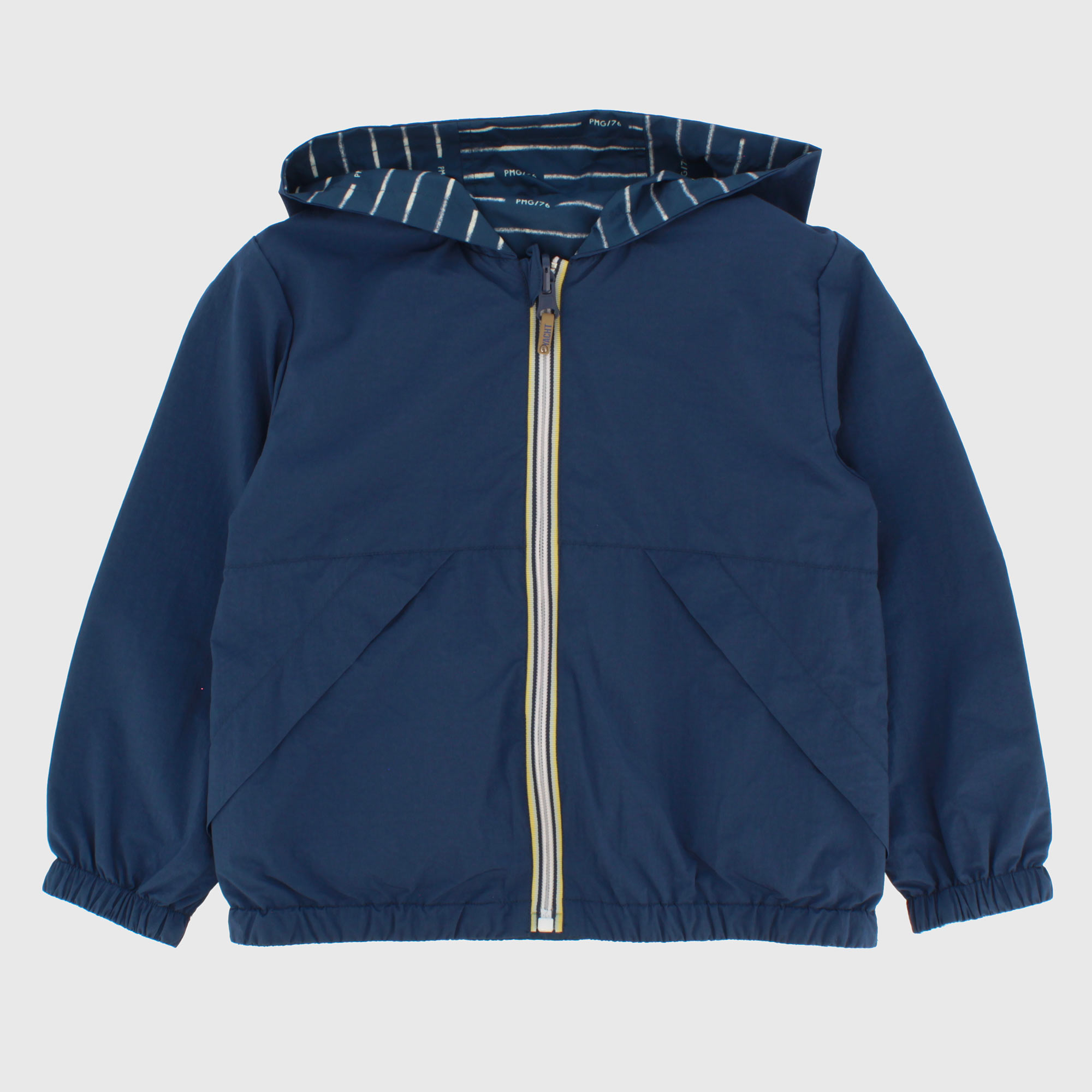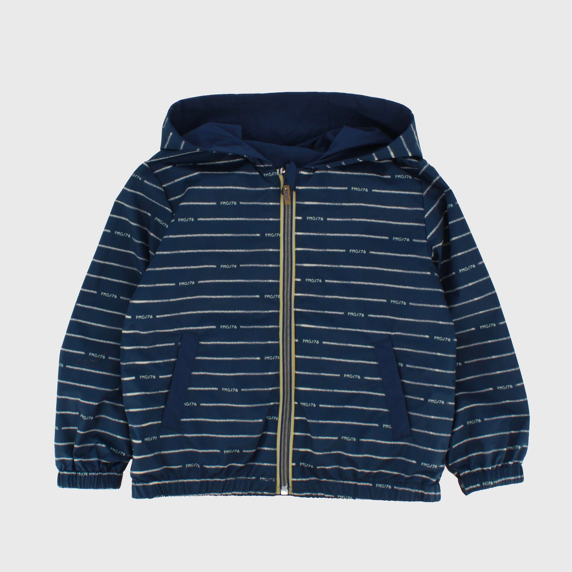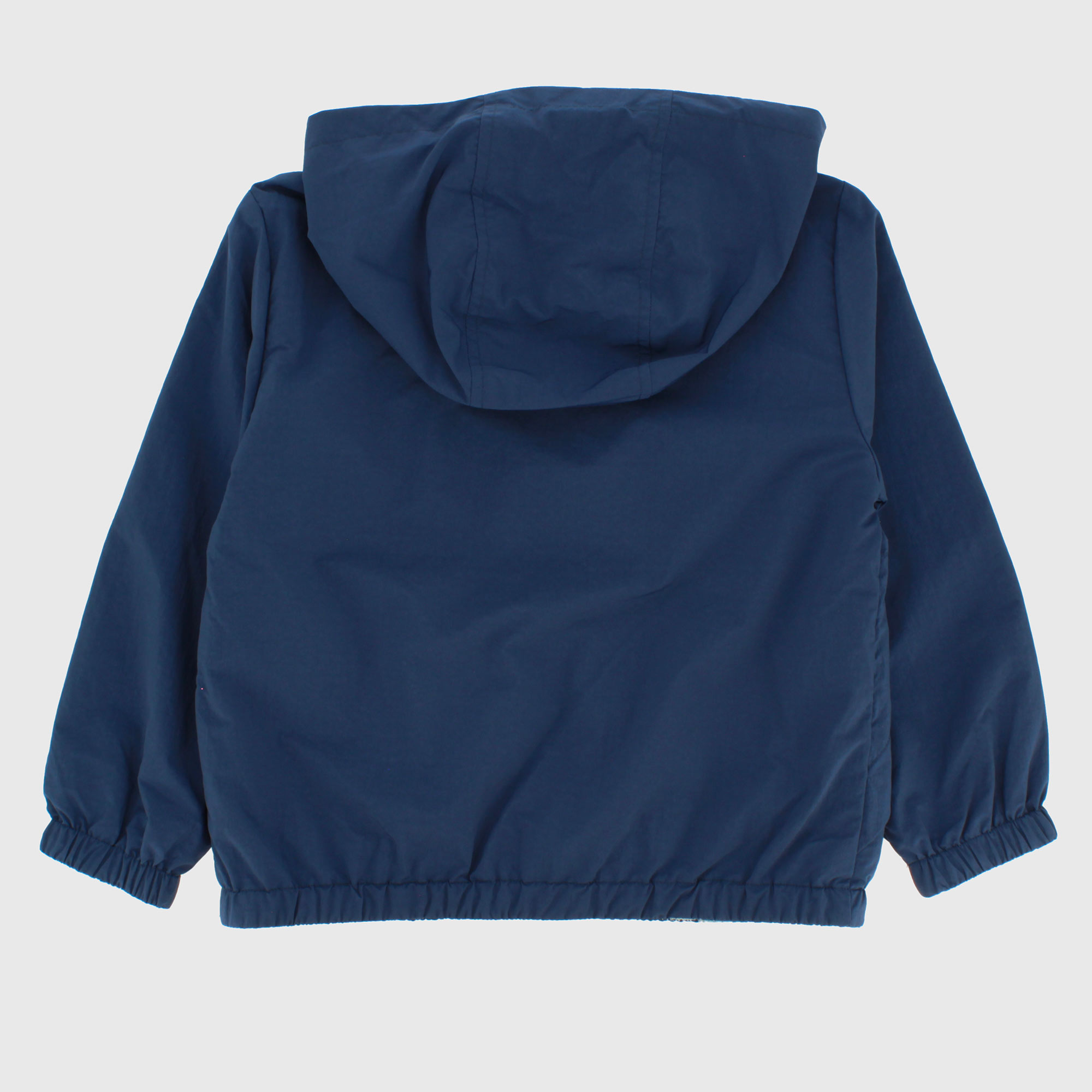 Veste double face avec capuche, manches longues. Fermeture à glissière avant. D’un côté, nylon uni avec poches velcro, de l’autre nylon imprimé avec poches gousset.
