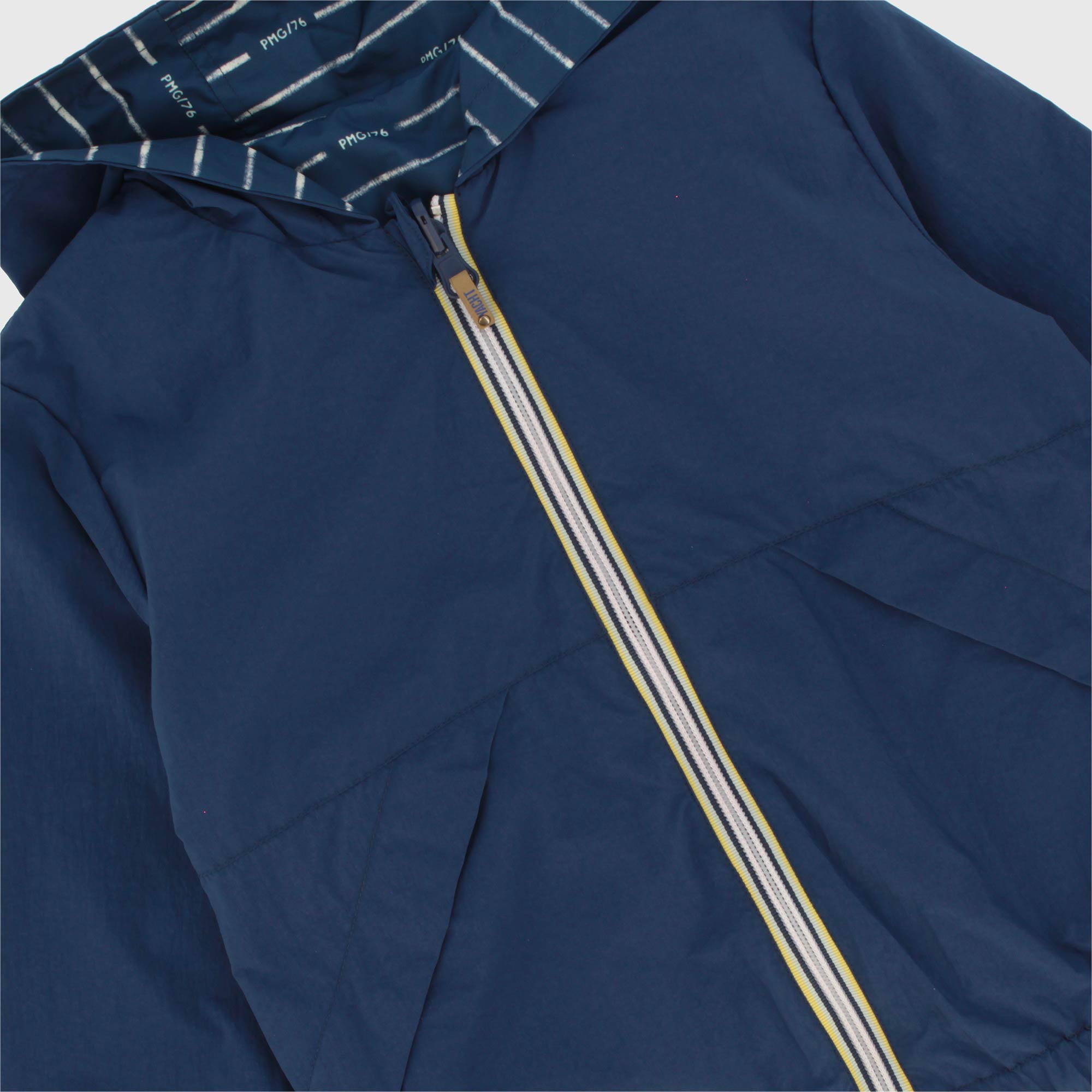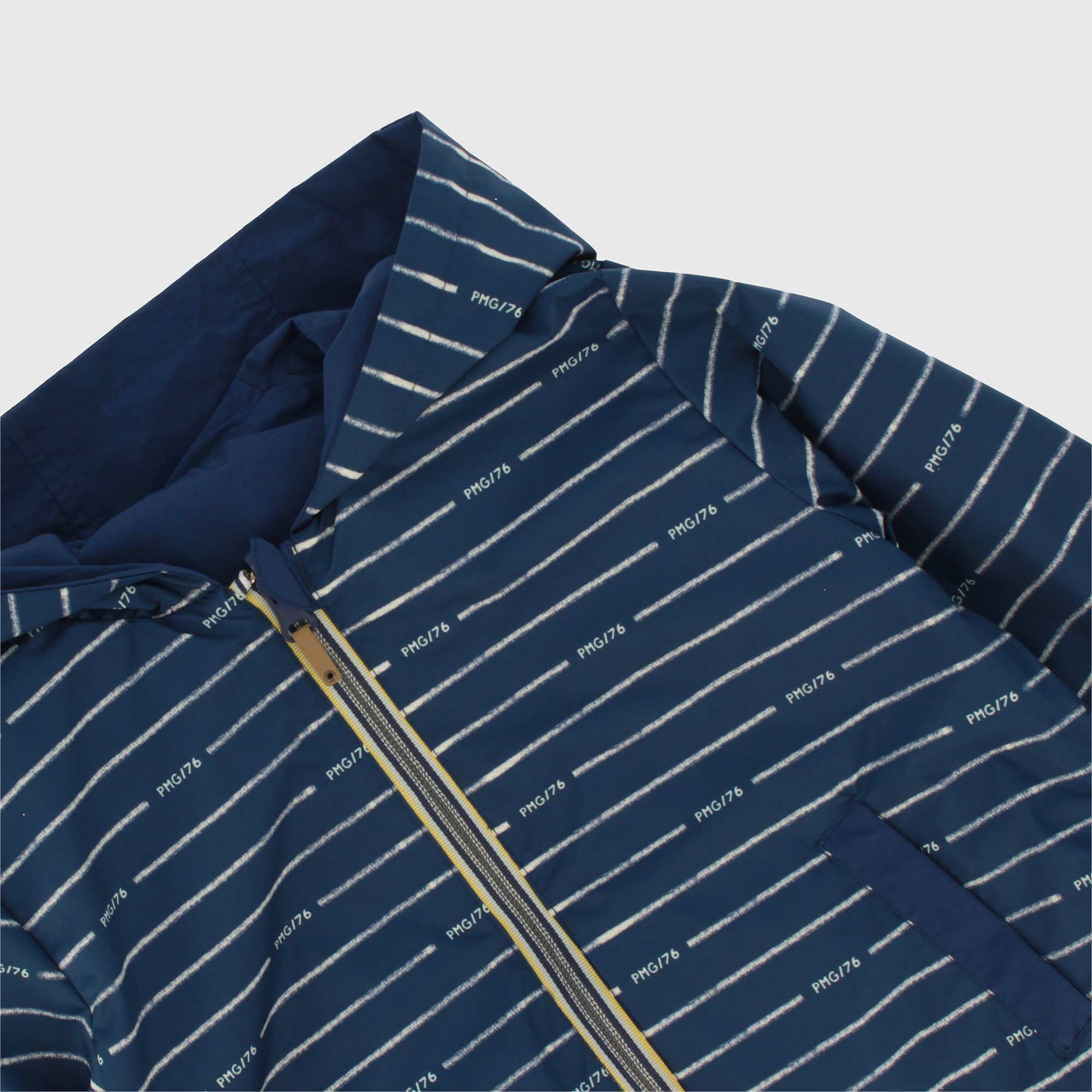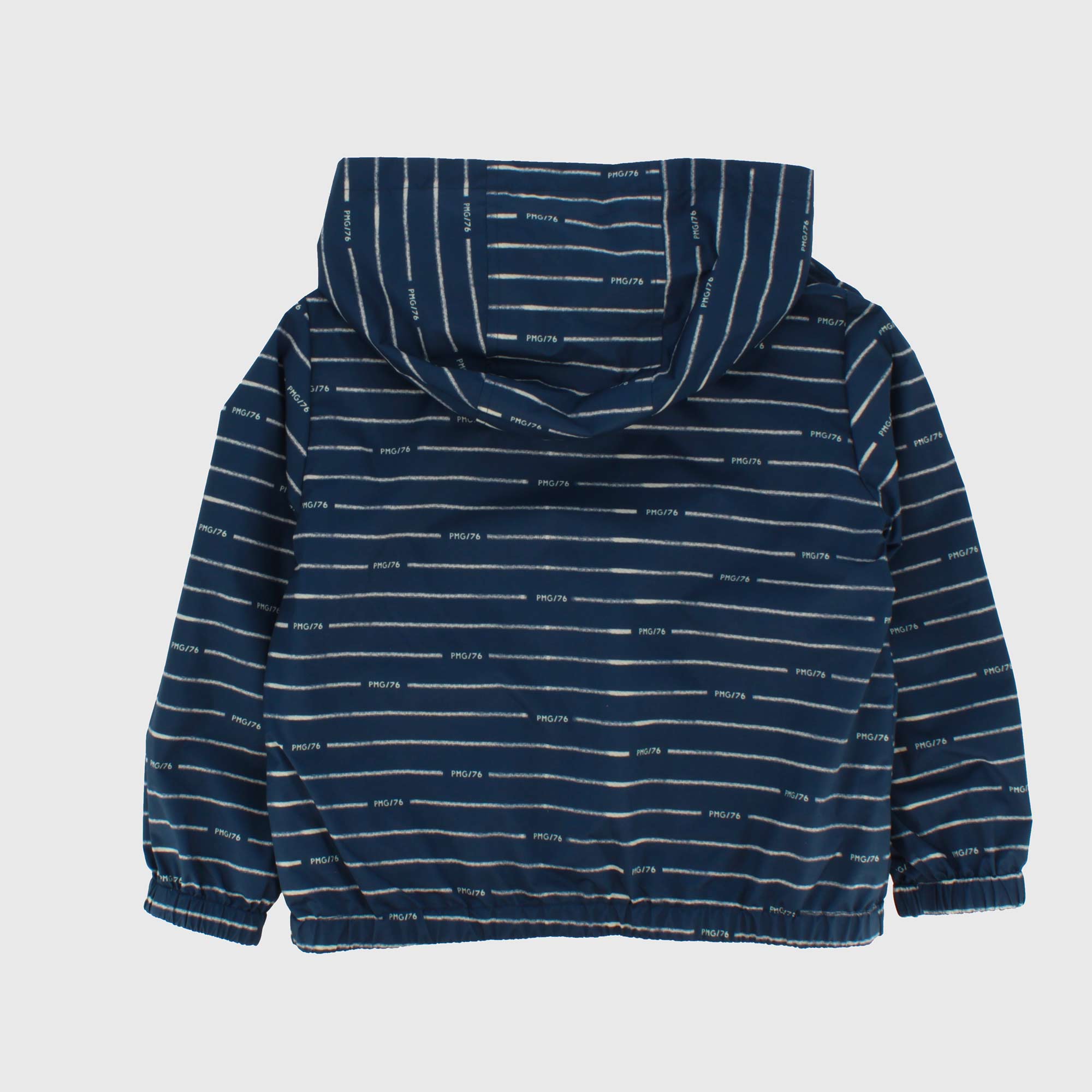 Veste double face avec capuche, manches longues. Fermeture à glissière avant. D’un côté, nylon uni avec poches velcro, de l’autre nylon imprimé avec poches gousset.