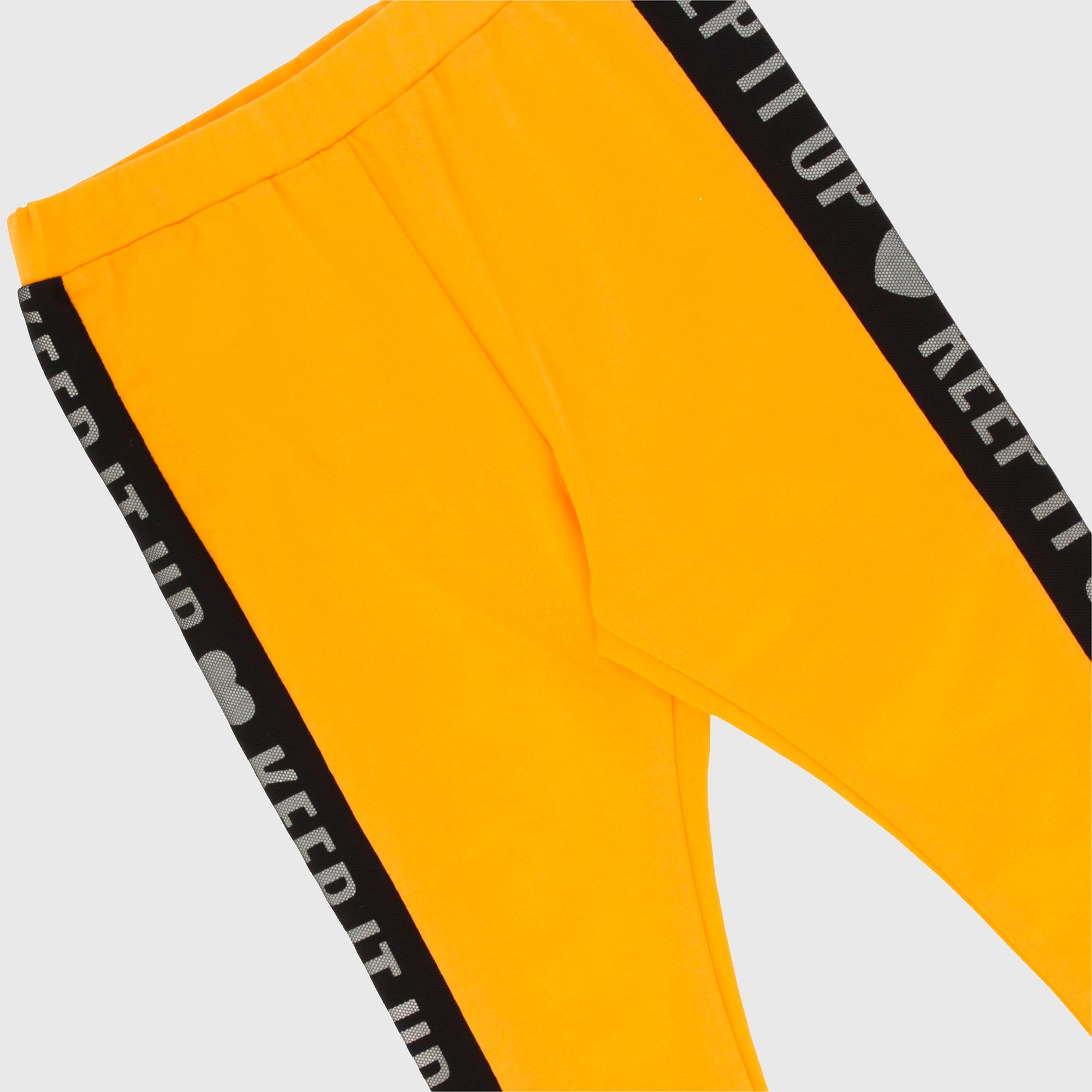 Leggings en jersey de couleur unie avec taille élastique. Insert latéral contrastant avec impression et micro-maillage.